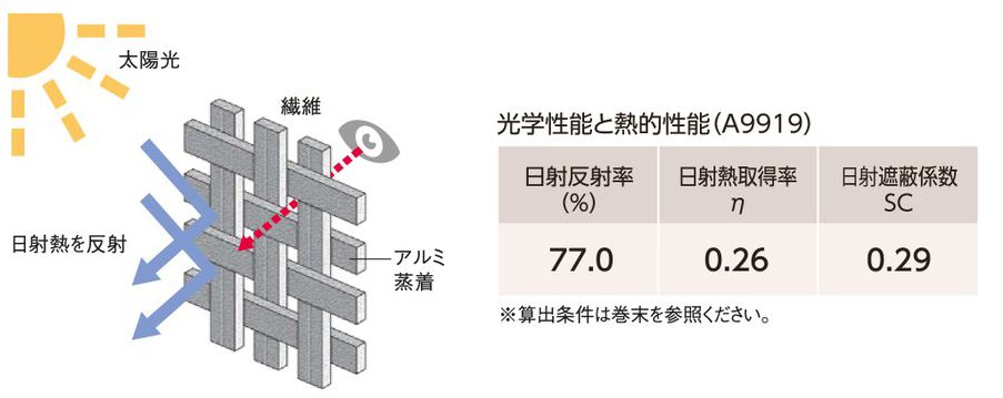 遮熱レースは室内の明るさを確保するとともに、一般的なレースに比較し、室内温度の上昇を抑制する効果があります。