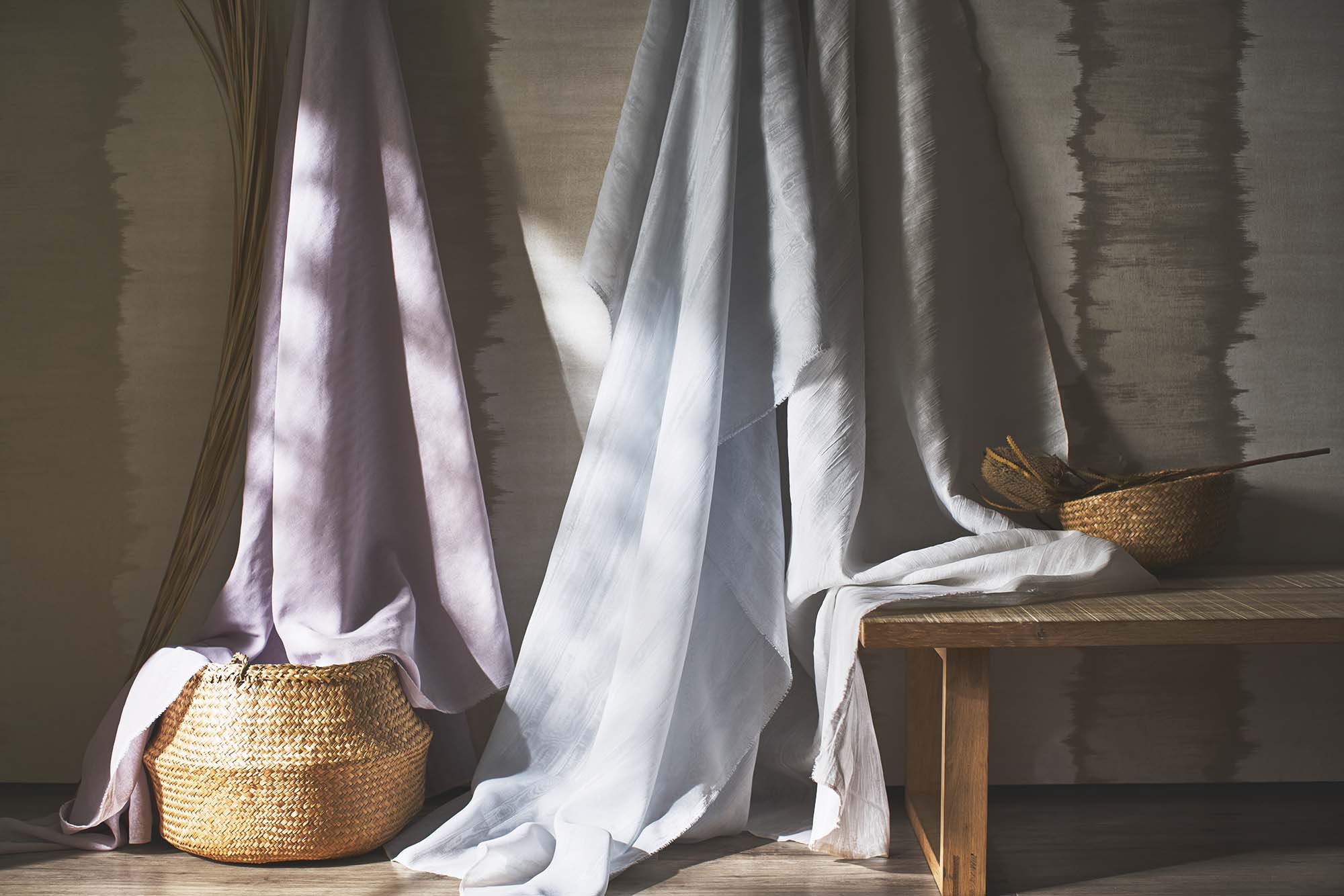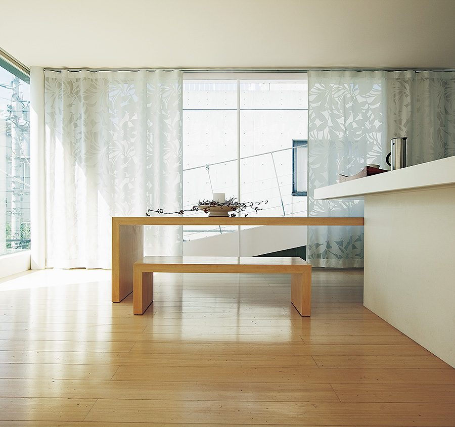 薄手の生地も裏地を付けることでボリューム感がアップし、重厚感のあるカーテンになります。