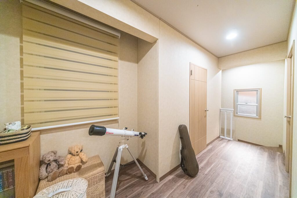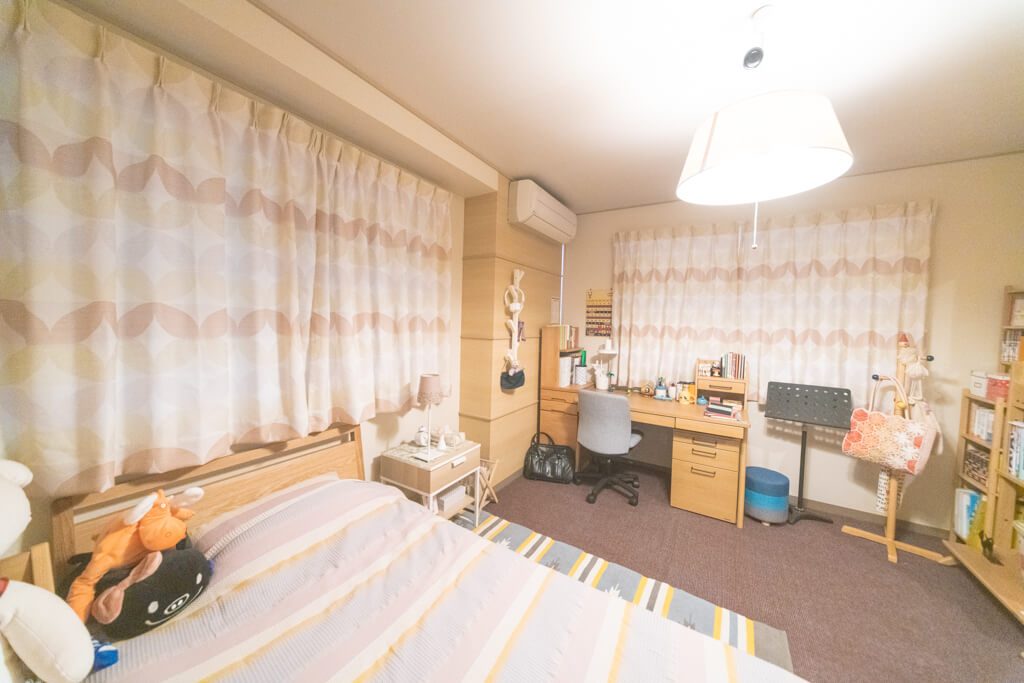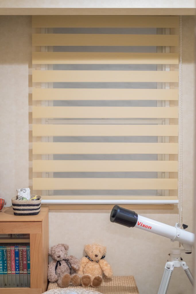 バイオリンをしているお嬢様は、中学生なので、幼すぎず大人過ぎずの優しい空間になるように、やわらかなトーンで甘すぎない模様のドレープをご提案しました。