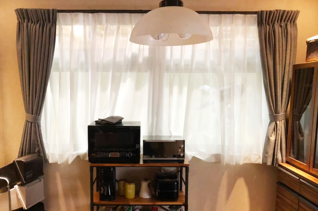 無地の生地ですが、リネンのような素材感のある素朴で暖かみのある質感が、 島崎さんのお部屋にあるウッド調のナチュラルなインテリアとマッチして、空間をより引き立たせる名脇役☆彡となりました。
