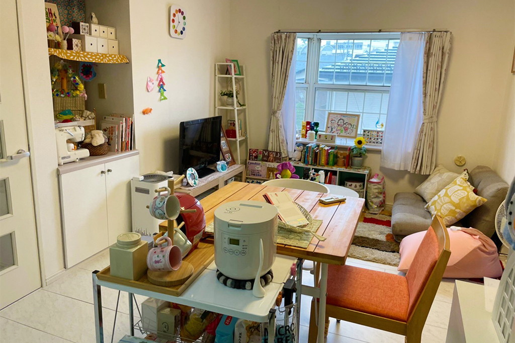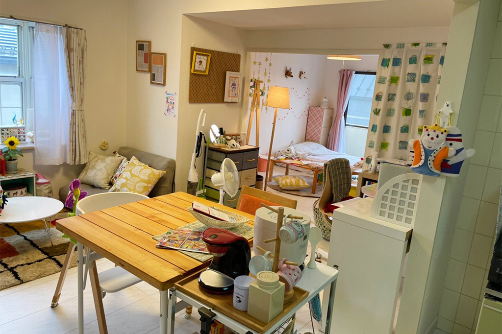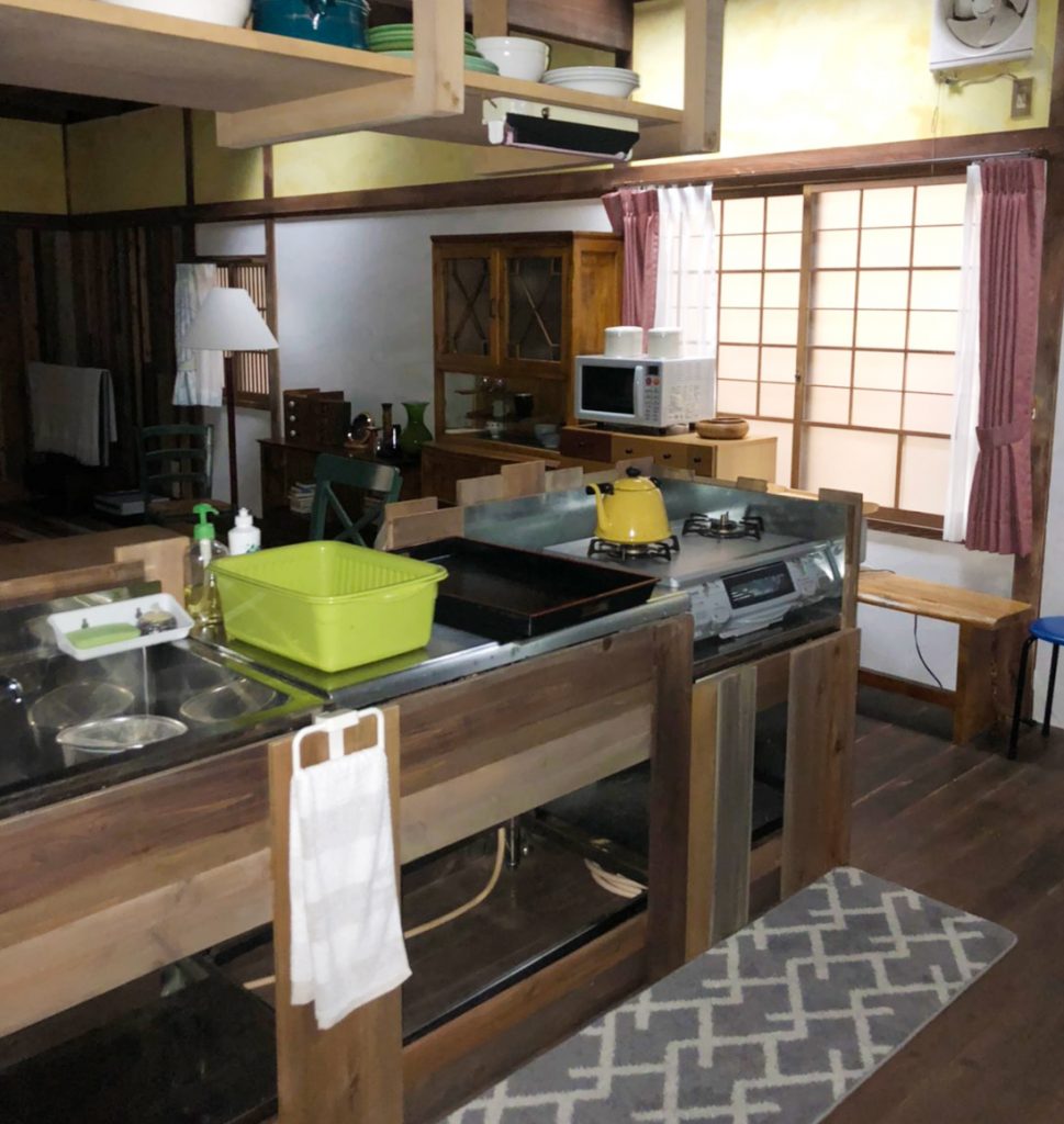 主人公たちが集まるシェアハウスとなる、お好み焼き屋『にじや』の2階のメインセットです。それぞれに悩みや秘密を抱えるシングルファーザー&マザーたちが、ひとつ屋根の下で子育てをしながら共に過ごし“家族”になっていくストーリーをそっと見守るインテリアの一つをお手伝いさせて頂きました。