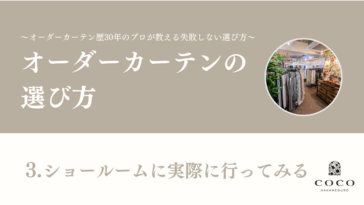 店舗には専門家スタッフもいるので、細かい疑問にも答えてくれたりしますよ。カーテンココは東京中目黒ショールームがあるのでぜひお越しください。