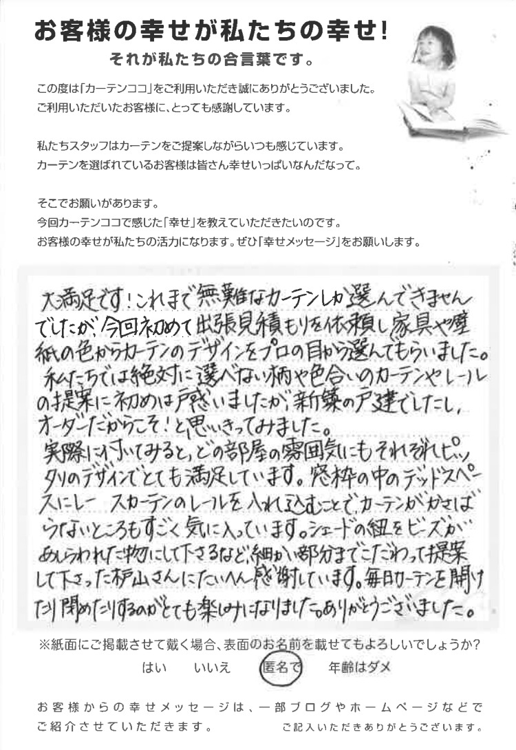オーダーカーテンを購入したお客様よりいただいた、ご感想ハガキをご紹介します。