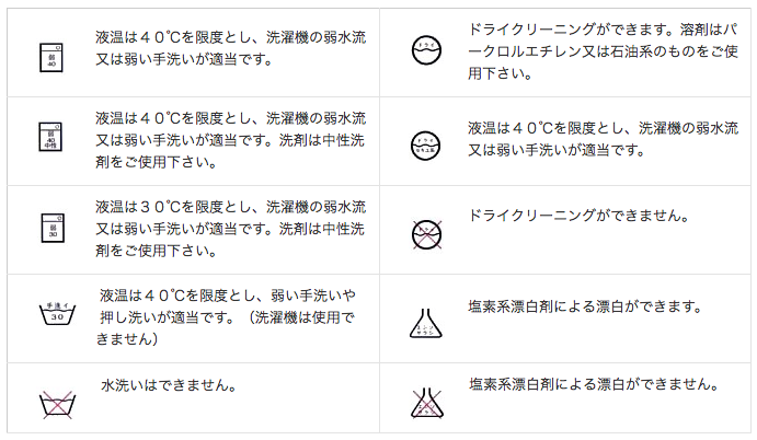 詳しくは消費者庁が掲載している洗濯表示をご覧ください。