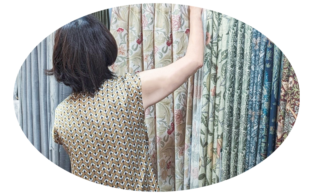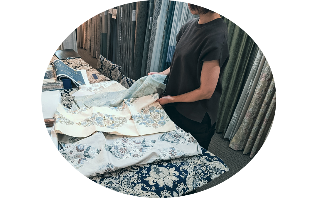 新しいお住まいやリフォームなどで新調するカーテンを選ぶ際に、まずはデザイン的な部分では、スタイルや生地選びはとても重要で、かつオーダーの場合は豊富な素材の中からどれを選んでいいのか悩まれる方がほとんどです。そこで、窓装飾に長年携わってきた専門知識を駆使してご提案をするのですが、そこに私が持つこだわりとしては『お客様それぞれのライフスタイルに寄り添ったご提案』を大切にしています。