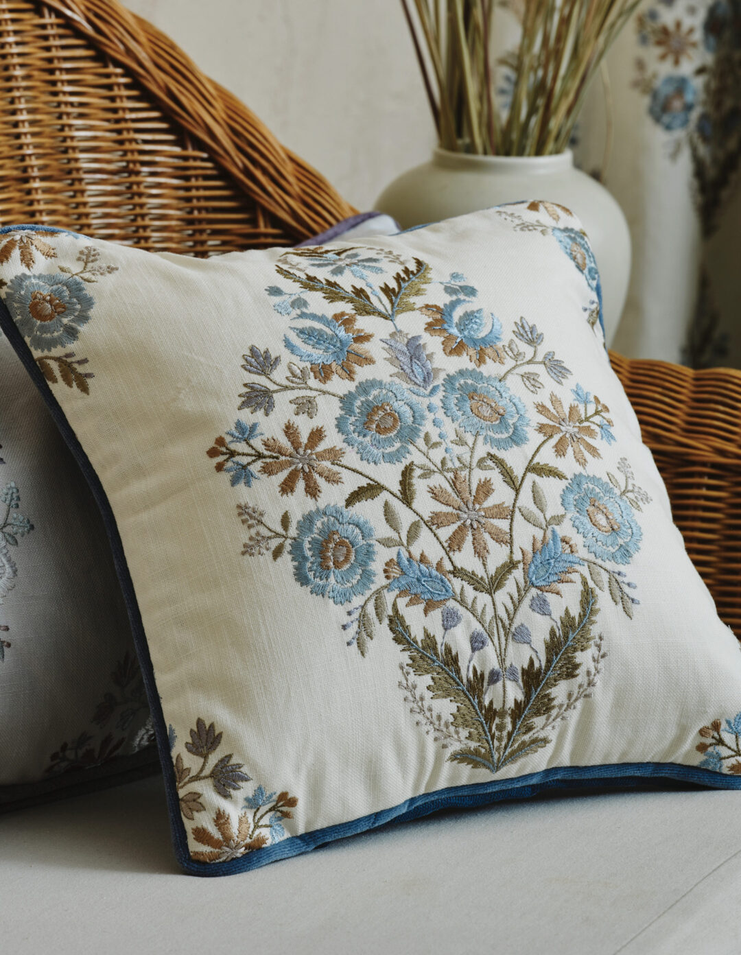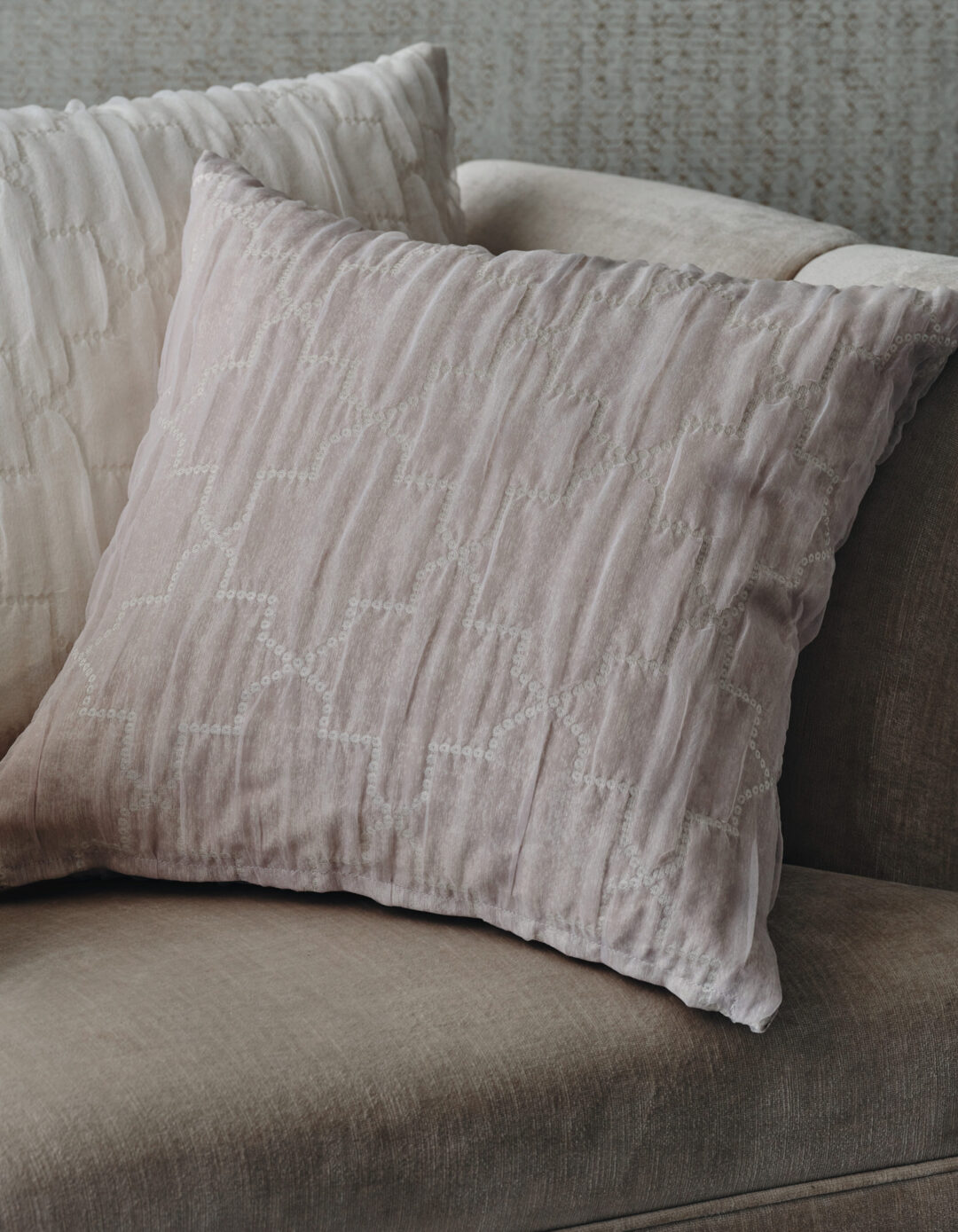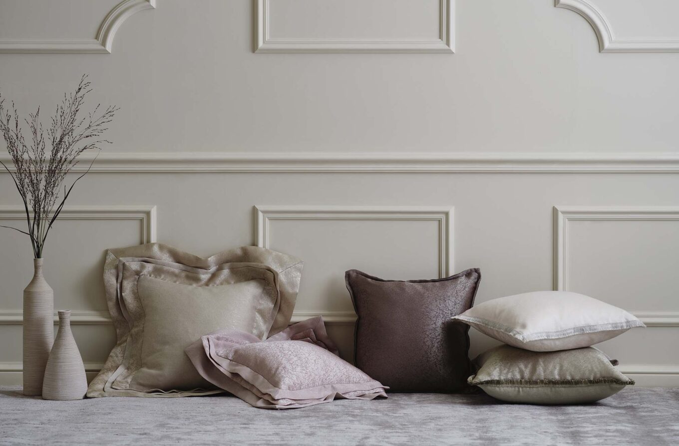 キャンペーン購入特典として、期間中にカーテンをご成約いただいたお客様には、マナトレーディングの生地を使った限定クッションをプレゼントいたします。