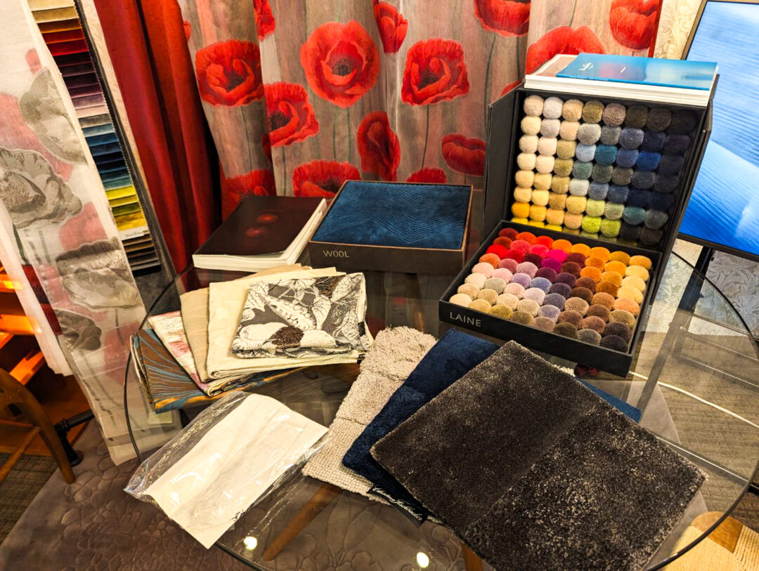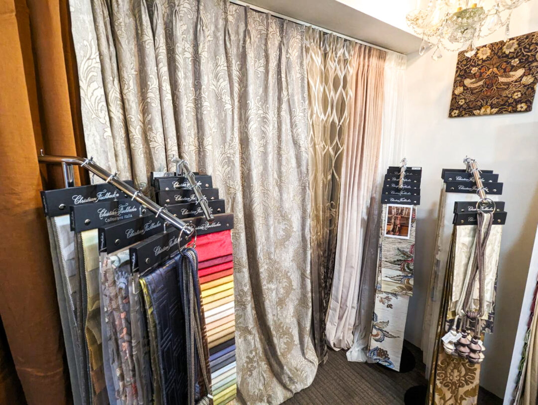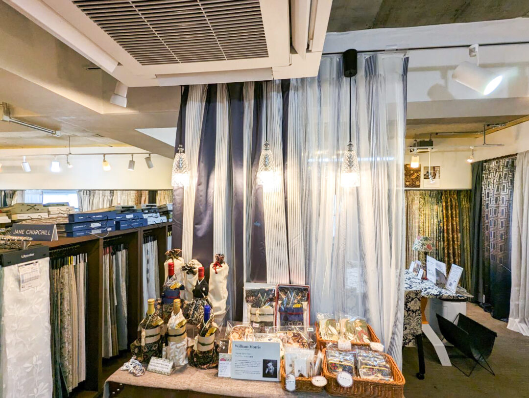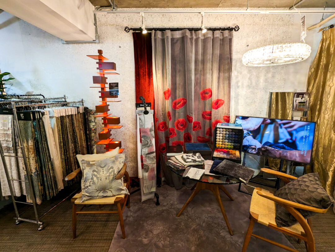 タイアップキャンペーン期間中のカーテンココのショールームでは、Christian Fischbacherのサンプルを多数展示してお待ちしております。