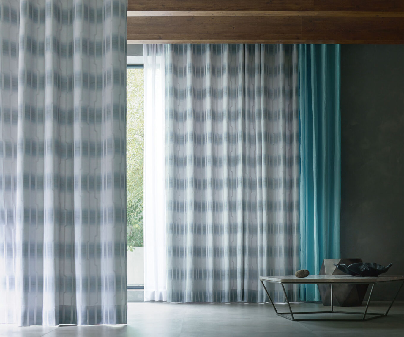 アングルは、遮光生地で縦にも横にもラインがあるため、広がりや高さを演出できます。