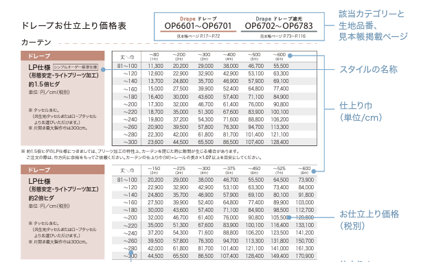 出典:サンゲツ「Simple Order」vol.2スタイル・お仕立て上がり価格表より
