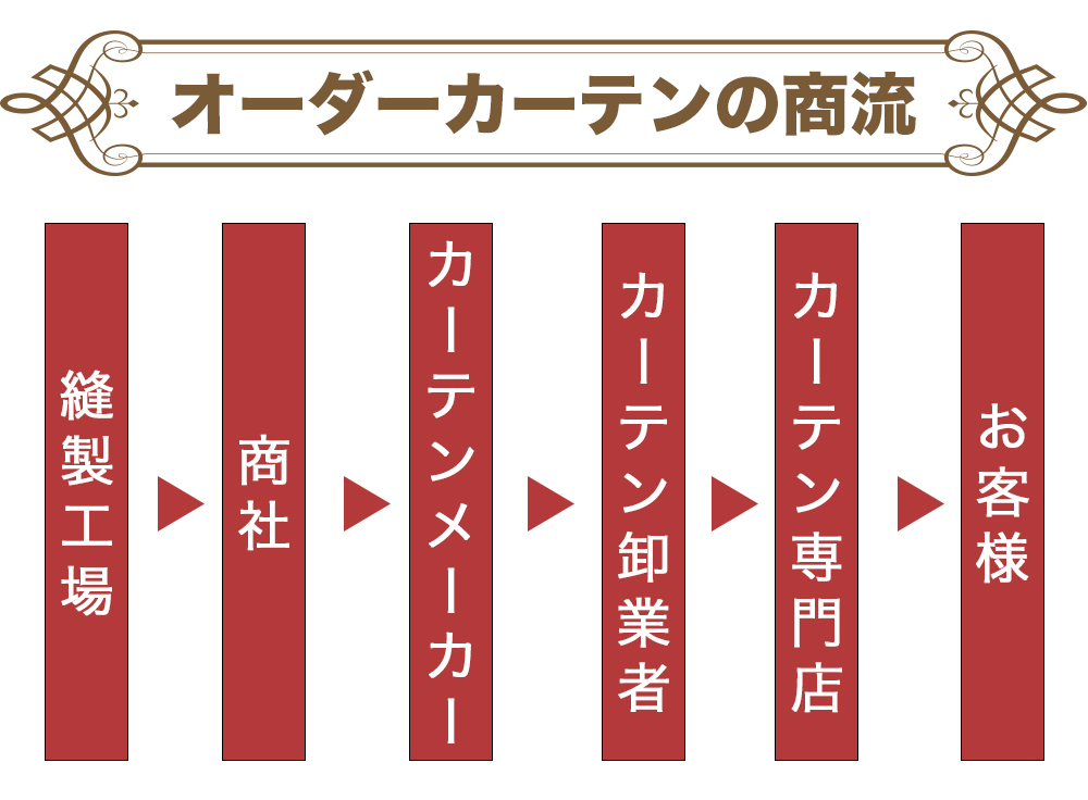 オーダーカーテンが高額な理由 ・カーテンがエンドユーザーに届くまで(商流)に関わる企業が多い