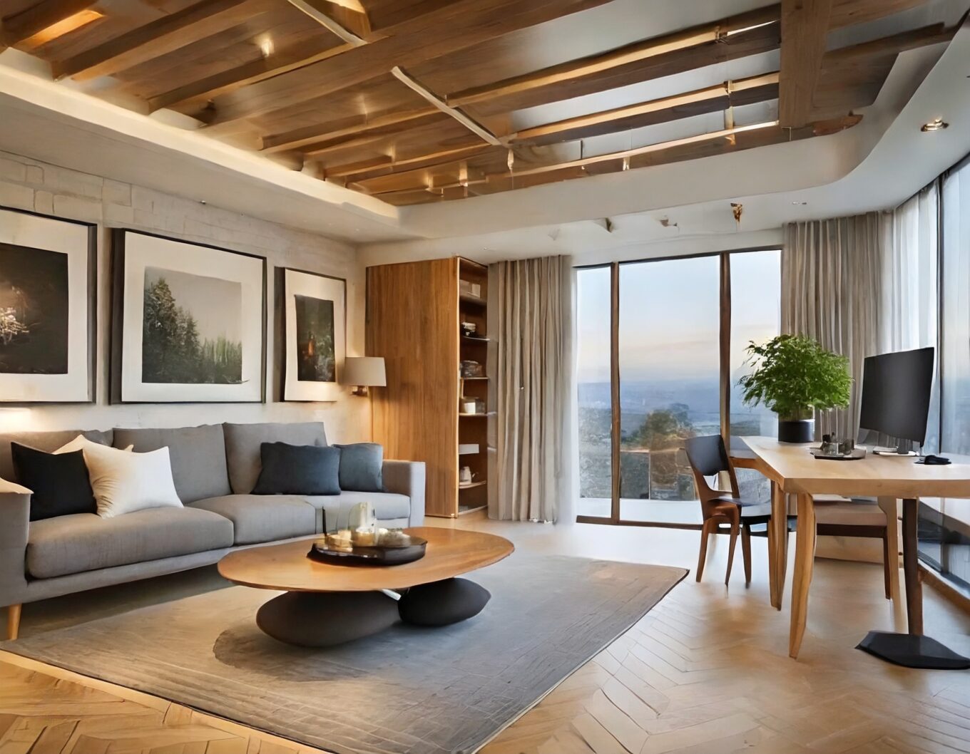 モダンな内装の空間に、アースカラーやナチュラルカラーの木製家具を多めに設置するとナチュラルモダンな空間が作りやすいでしょう。