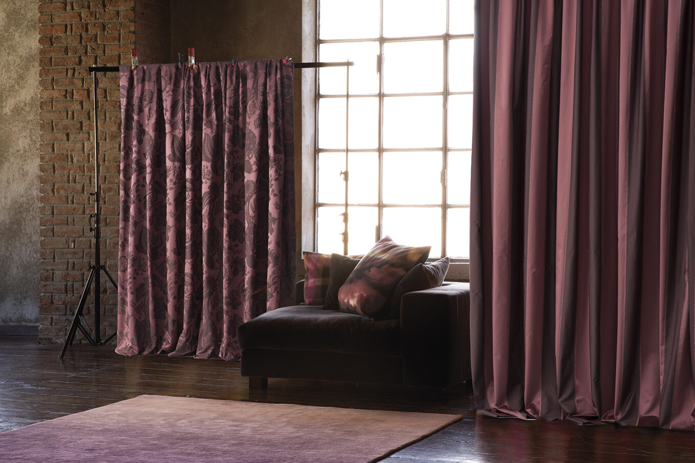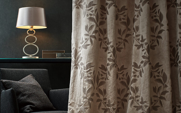 ジャンガラは、地模様の植物柄が空間に表情を加えるジャカード織のドレープカーテンです。