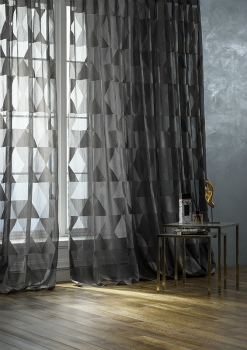 ディアマンテは、モダンなトライアングル型の柄がおしゃれなレースカーテンです。