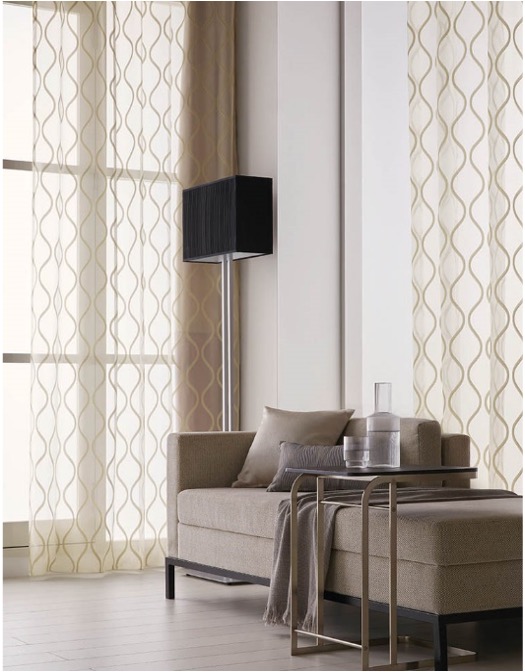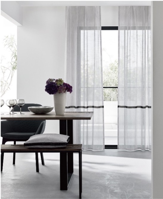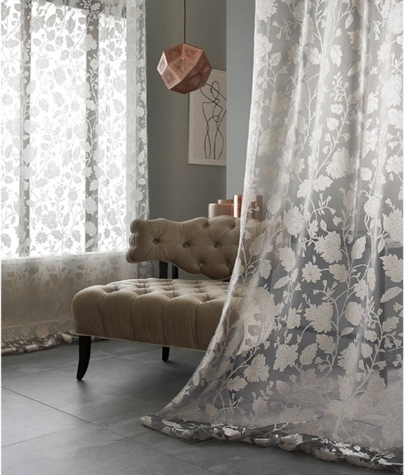 糸の放つ艶感とバックカットの表情がエレガントさを醸し出し高級感のあるデザインシアーです。透過する光により、優しい落ち着いた艶・デザイン性が一層高まります
