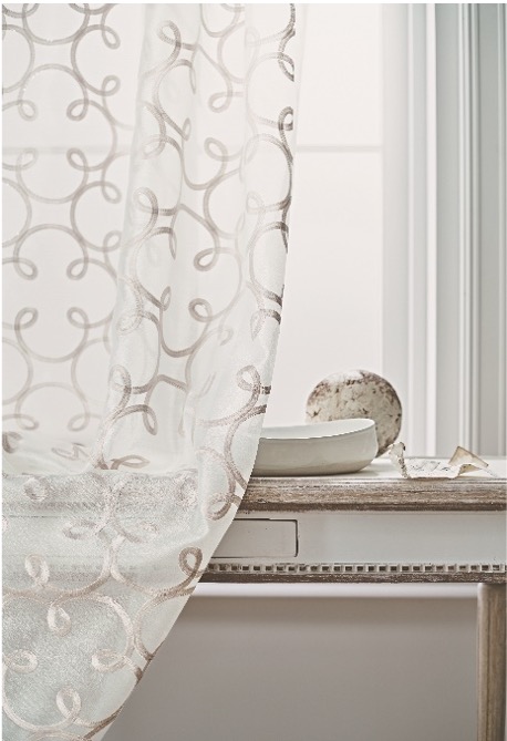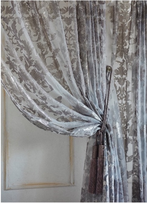 ラージサイズの優美なダマスク柄をストライプ状にジャガードベースで織ったシアー生地。オパール加工と顔料、箔プリントを組み合わせ、ラグジュアリー感を演出しました。イタリアの海港都市の名前を付けています。2色展開となります。