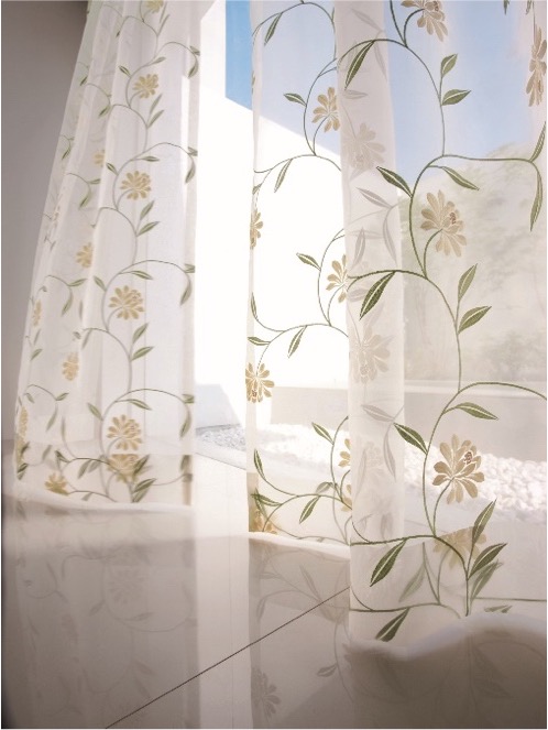 芍薬の花からインスピレーションを受けた花柄で人気のベストセラー、ドレープ「パリス」と同じ柄をオーガンジーシアーに刺繍しました。2色展開となります。