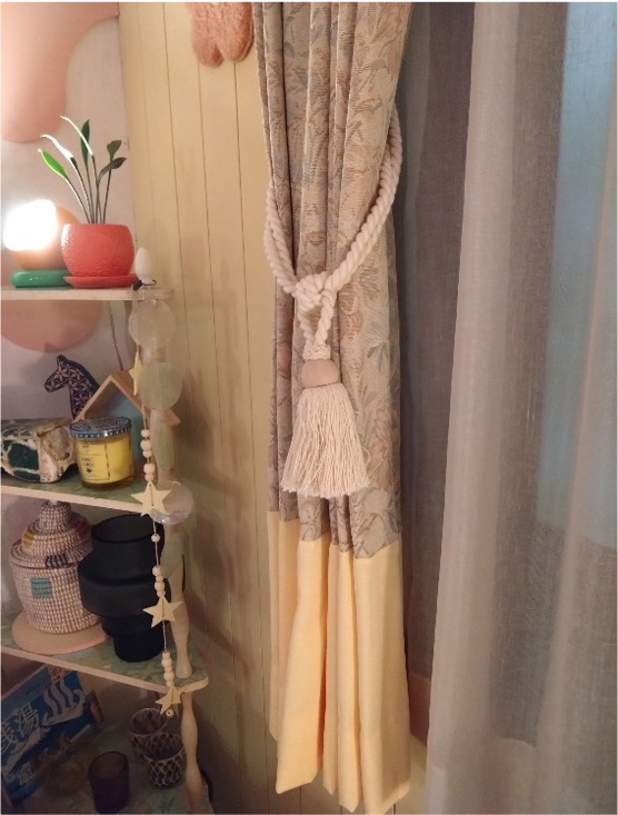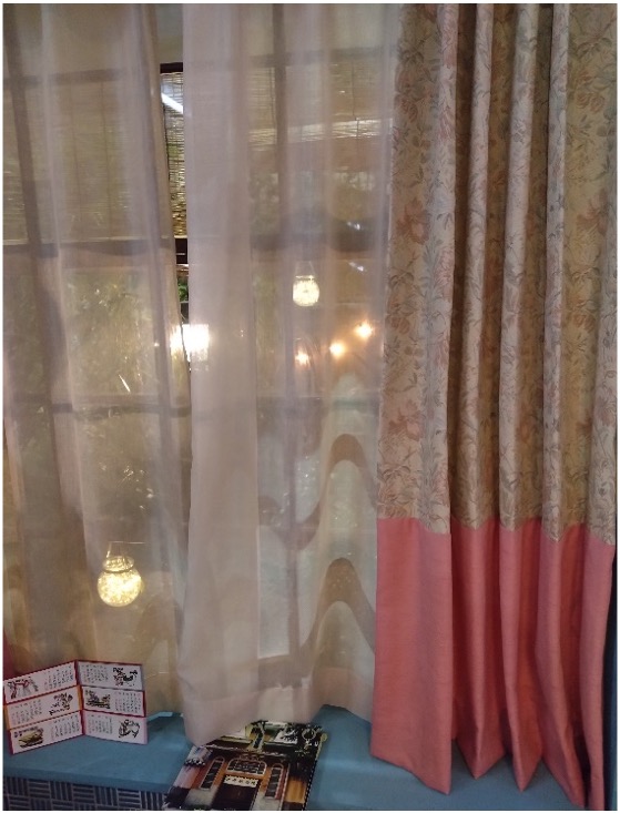 レトロな室内に、全体的にはナチュラルテイストながら、カラフルに・・・今回のドラマでは共通の花柄ドレープの下に各お部屋のインテリアに合わせた無地のドレープをアクセントにコーディネート致しました。