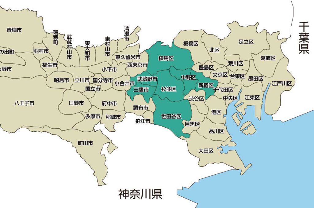 オアシスの対応地域は、東京都杉並区と武蔵野市を中心とした以下の市・区・沿線上です。