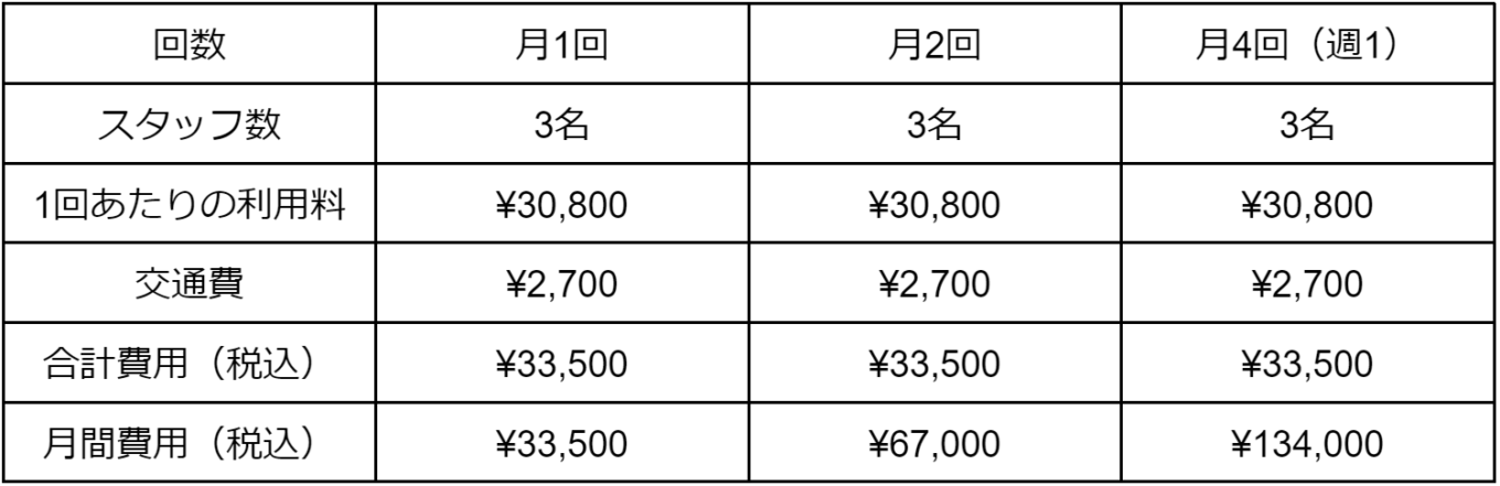 1時間当たり5,500円/名で、相談内容や作業時間に応じて料金が変わります。