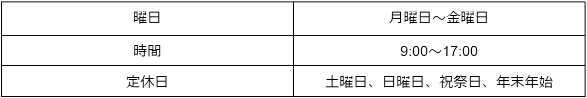 オアシスのサービスを利用できる日時は、以下の通りです。