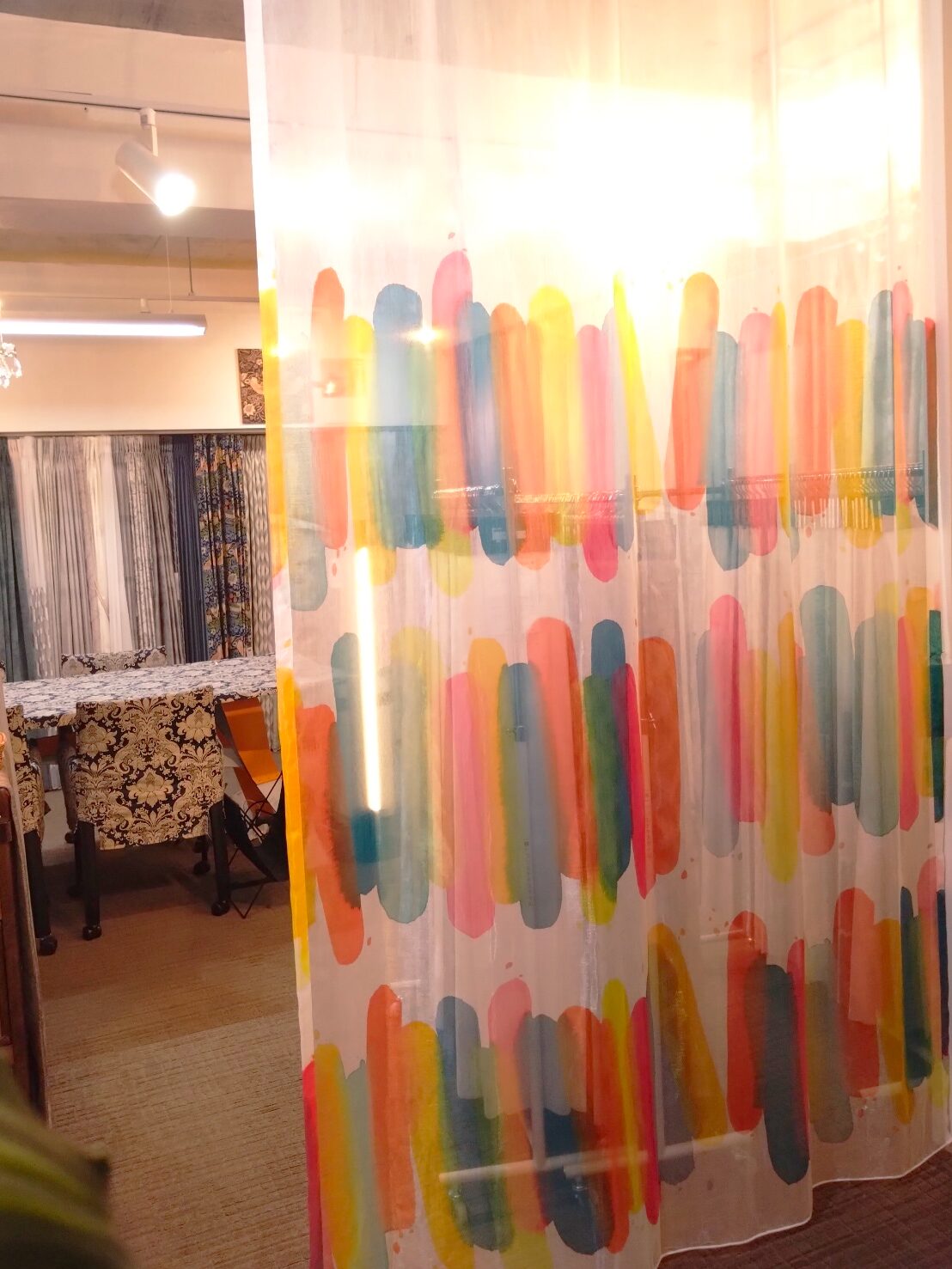 ドレープカーテンはグラフィックデザイナーとのコラボ生地。