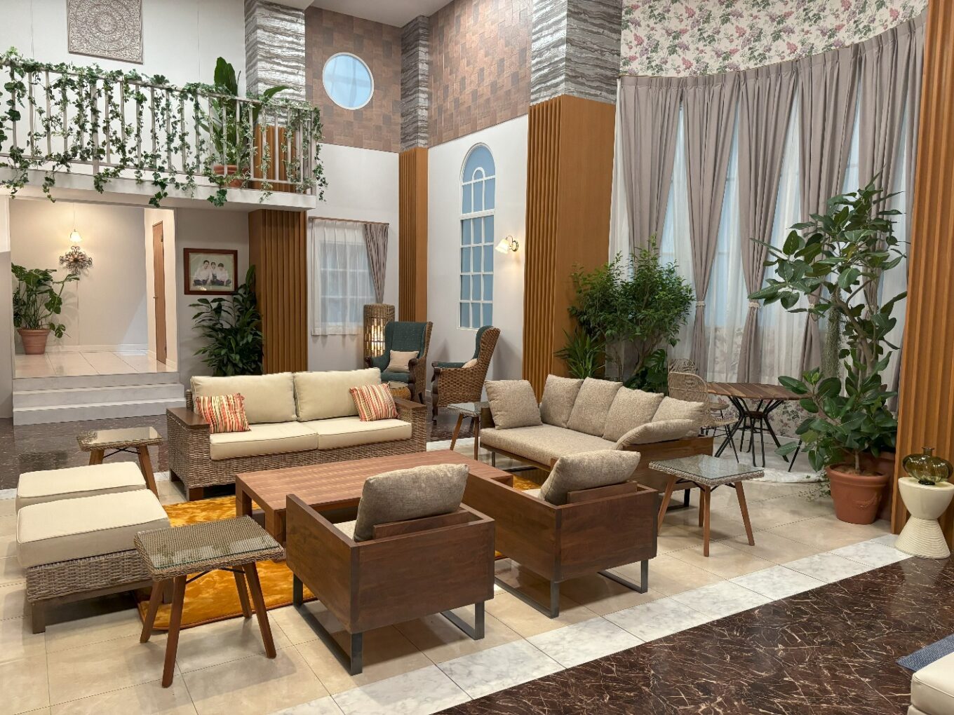 観葉植物の爽やかなグリーンが映える南沢家に、ナチュラルな空間に馴染むリネン風の素材感のあるカーテンをお納めしました。