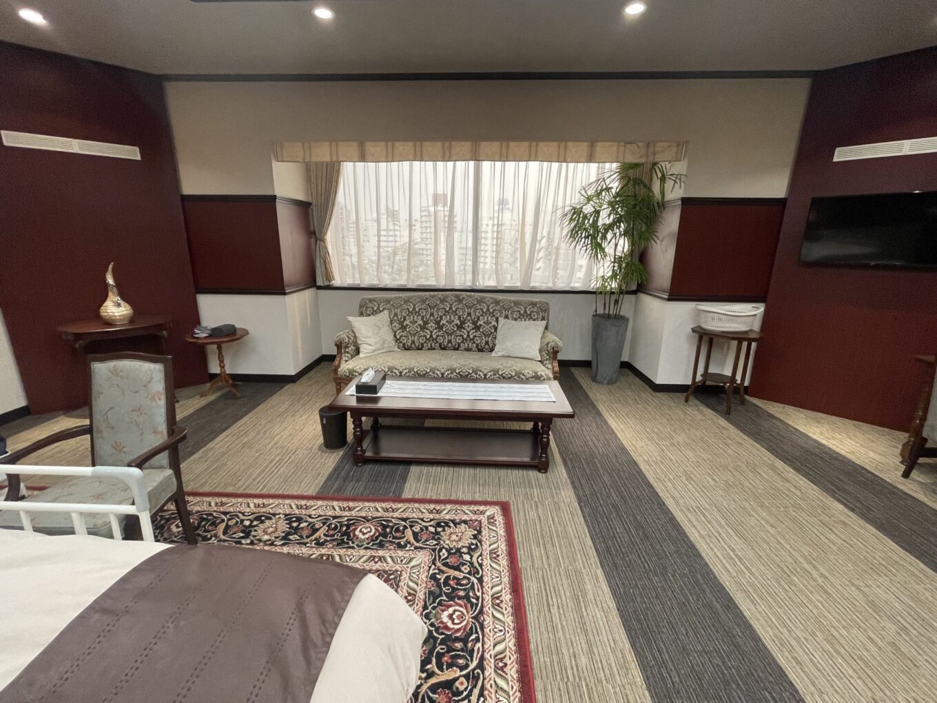 緻密なサテン地にクラシカルな植物文様をストライプ状に表現した上品なカーテンとなっております。