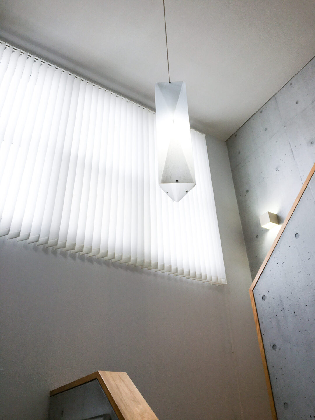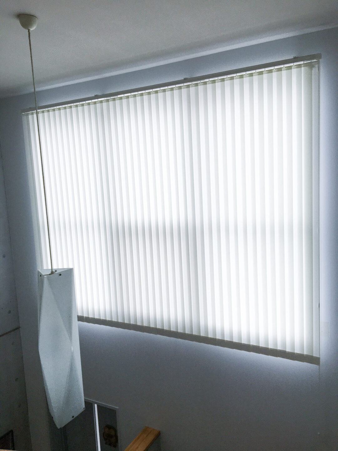 シンプルモダンな高窓を彩るバーチカルブラインド