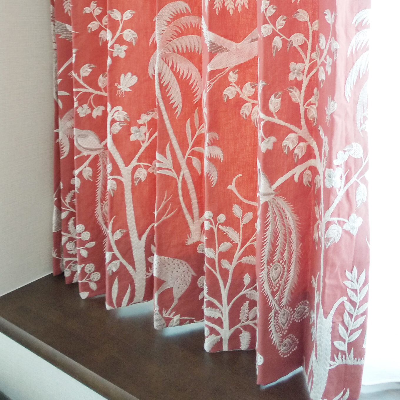 ジェーンチャーチルの繊細な刺繍のファブリックをカーテンに