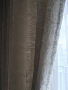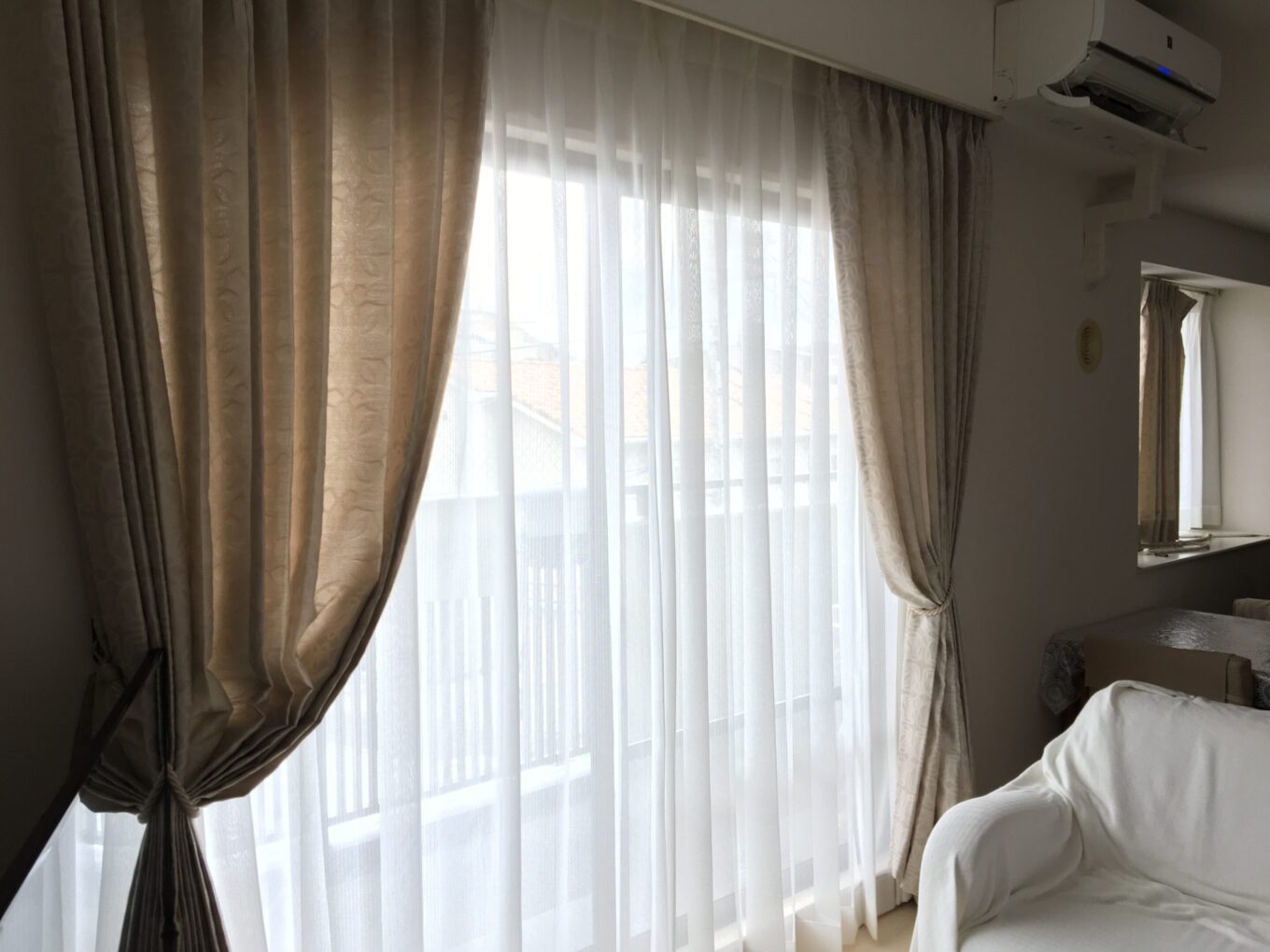 ナチュラルなリビングに寄り添う、円弧の花柄カーテン