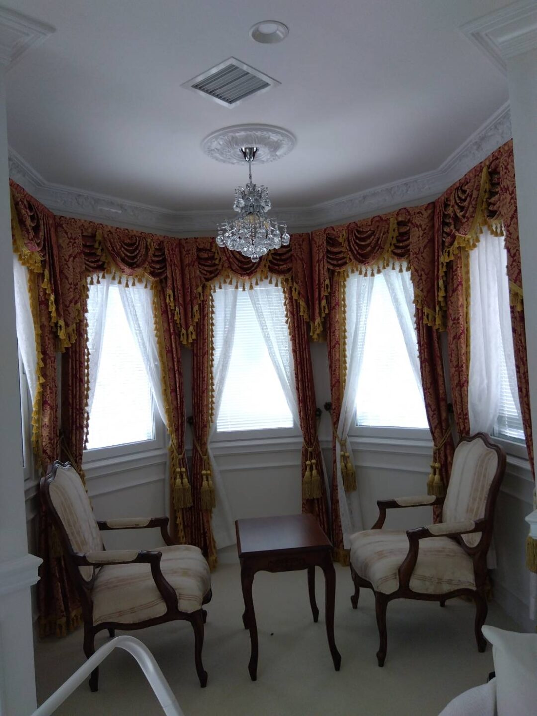 レトロな雰囲気のカーテンだったので近代的なクラシカルスタイルを求めるお客様に最適なカーテンを提案いたしました。