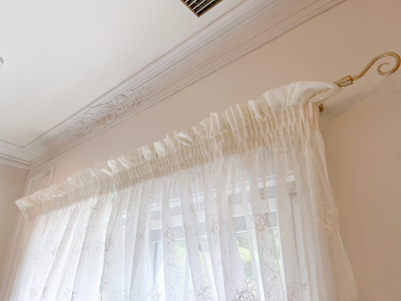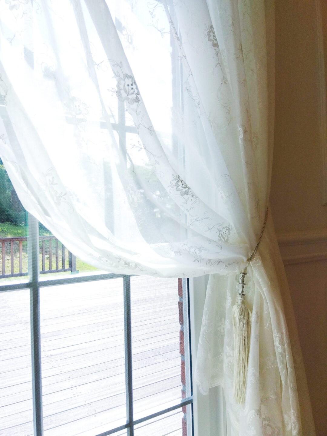掃き出し窓は何もついていませんでしたが、見た目にも重くないホワイト糸で仕上げました。