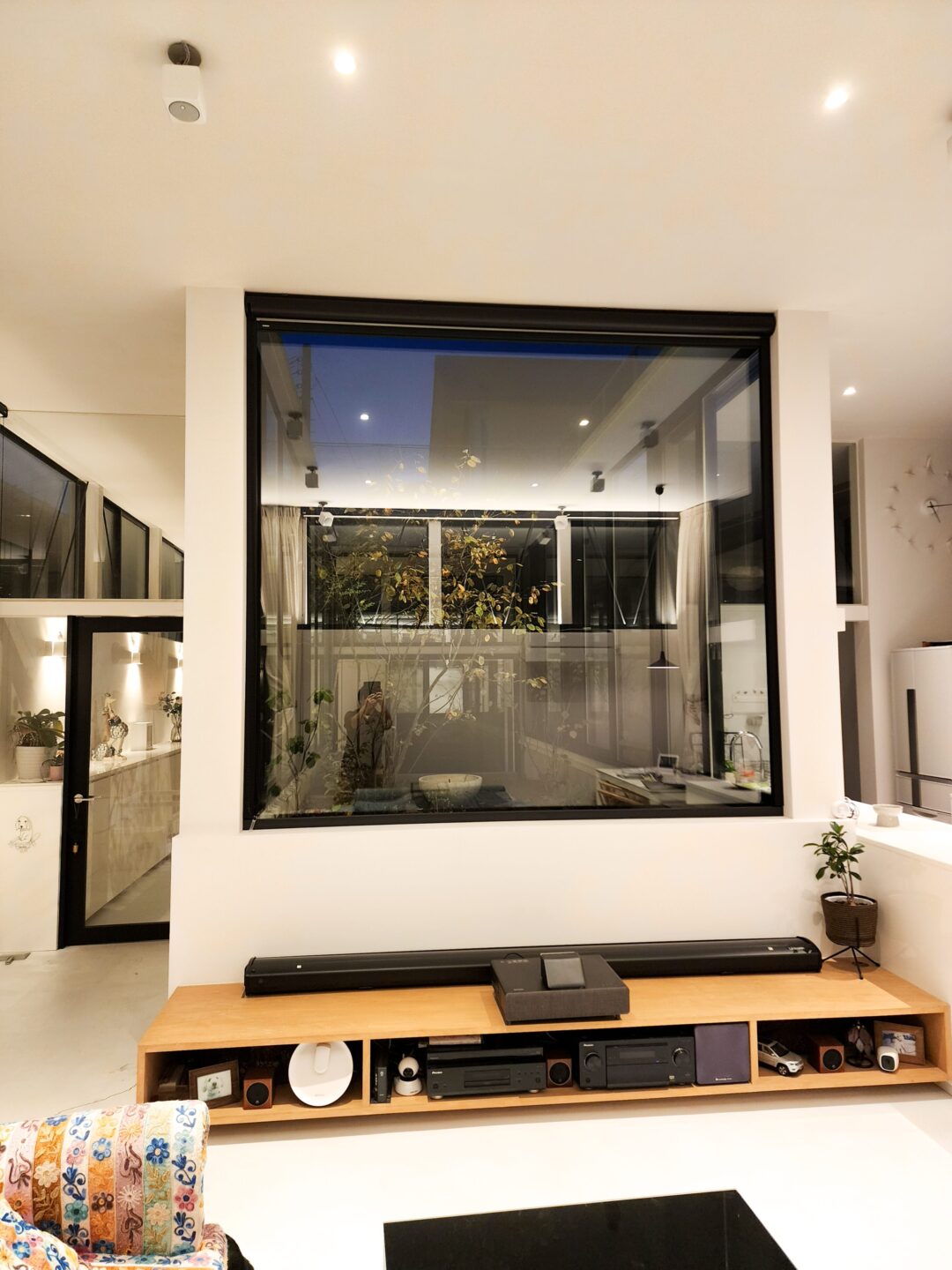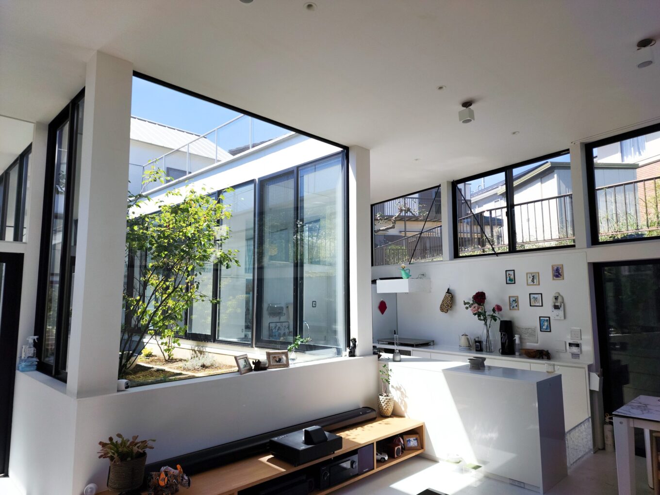家中窓ガラスで囲まれた設計士監修の住宅でした。
