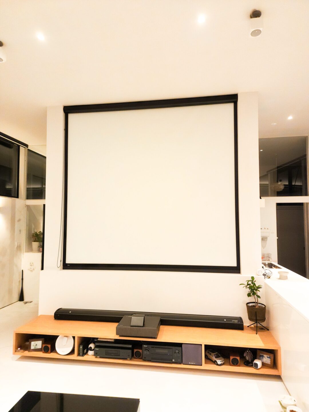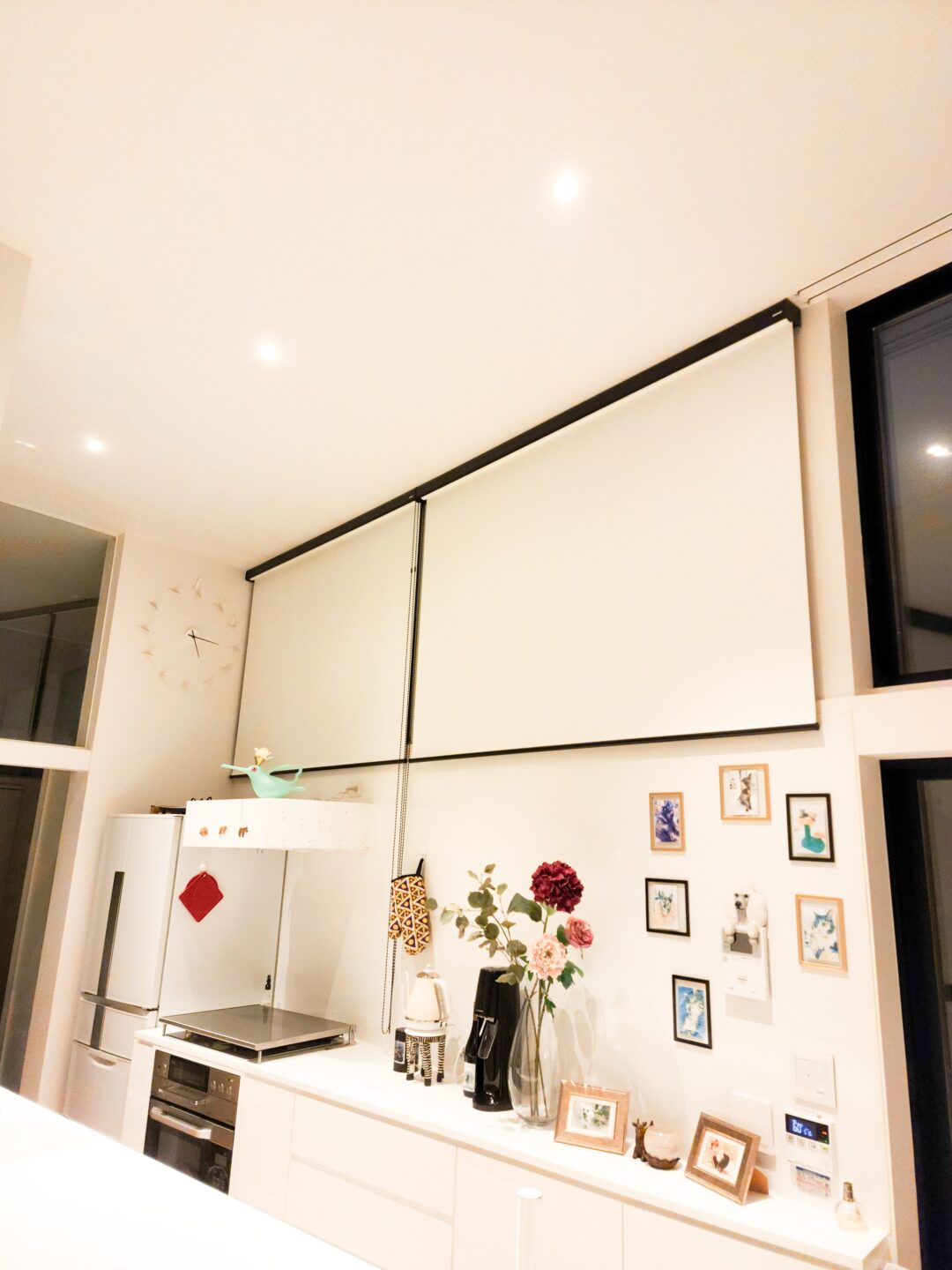 ガイドレールワイドタイプを施工した窓はかなり大きくて制作可能サイズ6㎡ギリギリの大型スクリーン!