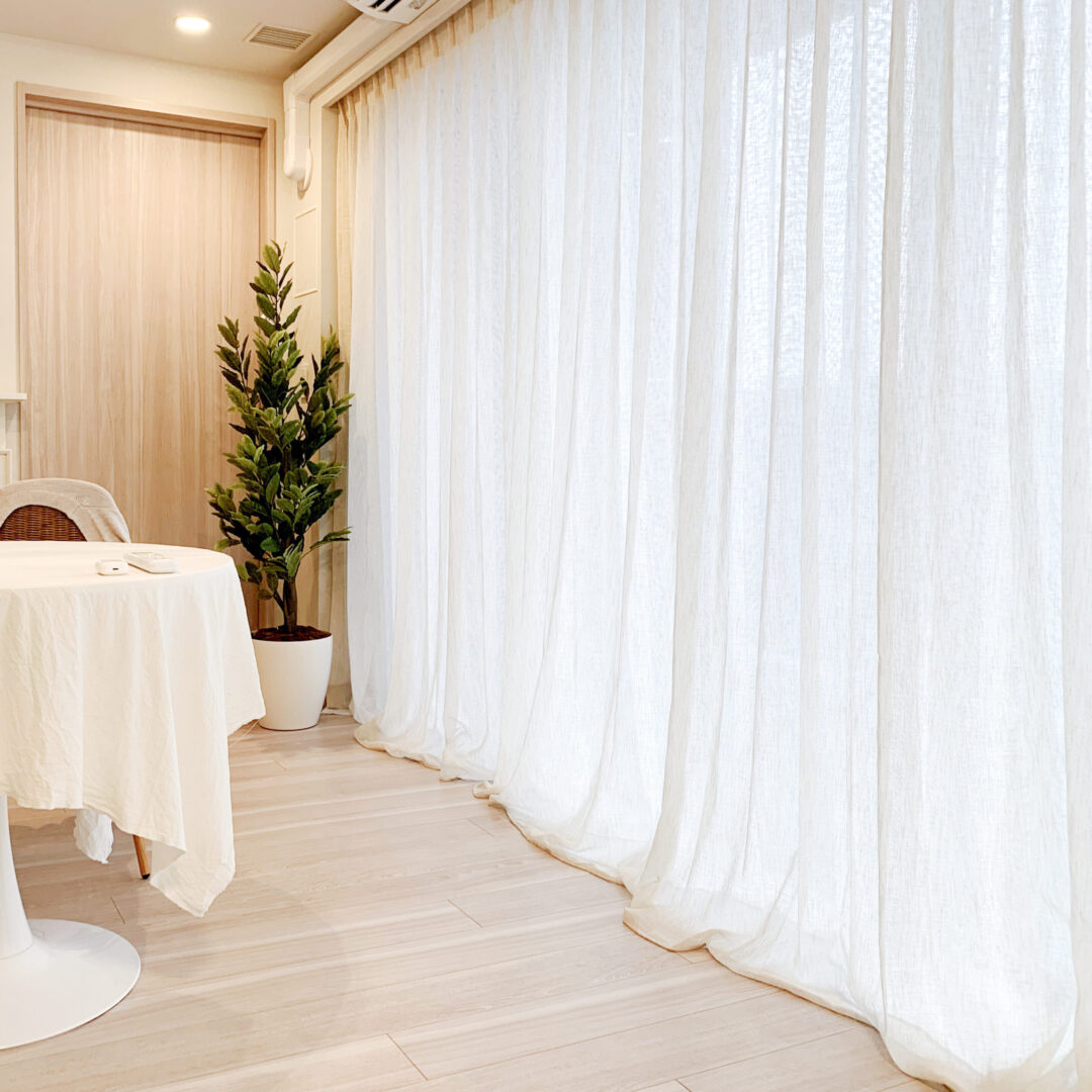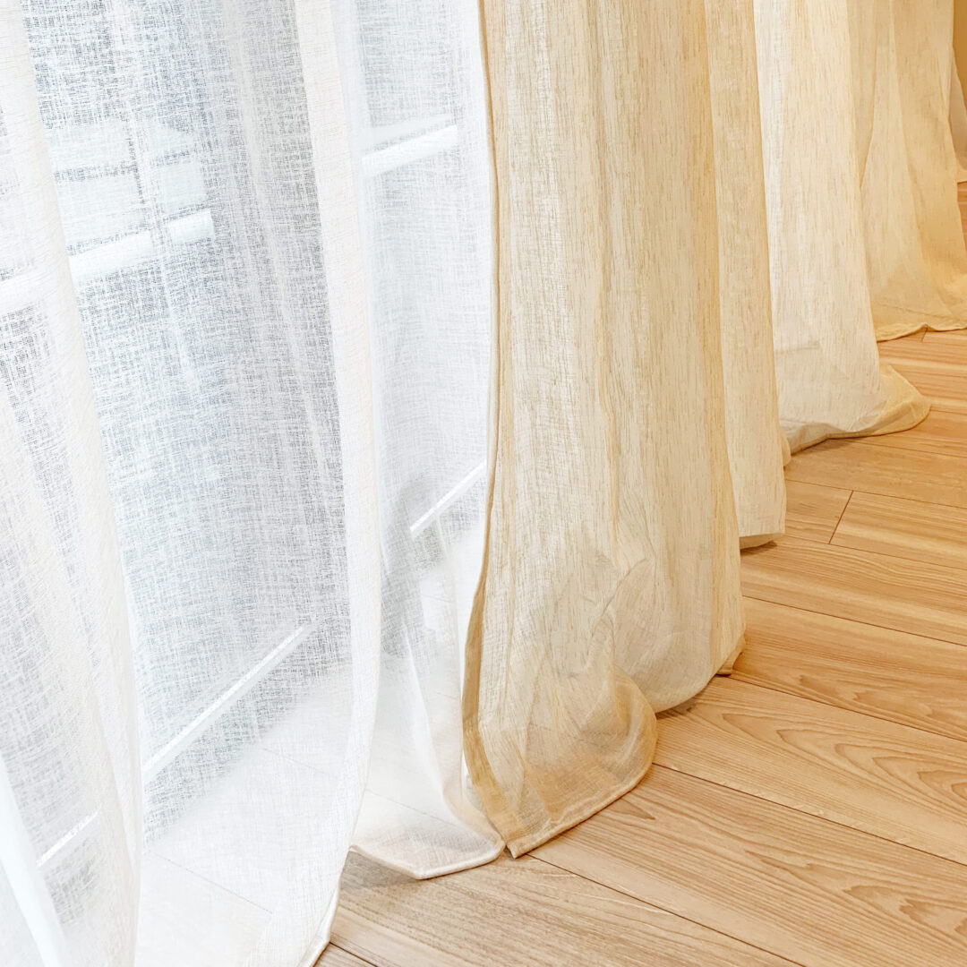 ナチュラルなインテリアのお部屋に、リネンの様なレースカーテンをお納めしました。