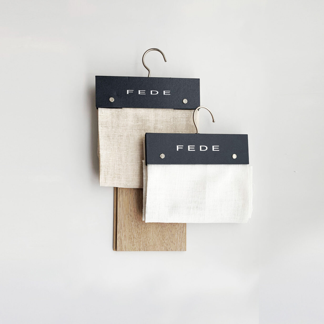 本物のリネンだと家でお洗濯できない、湿度によって寸法が安定しないと不安な方にはポリエステルのリネンライクなファブリックがお勧めです。今回はFEDEのLECANNELという生地でお仕立てさせていただきました。風合いの良いまるで麻の様な生地ですが、ポリエステル100%でご自宅でお洗濯もできます。
