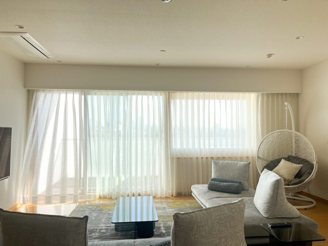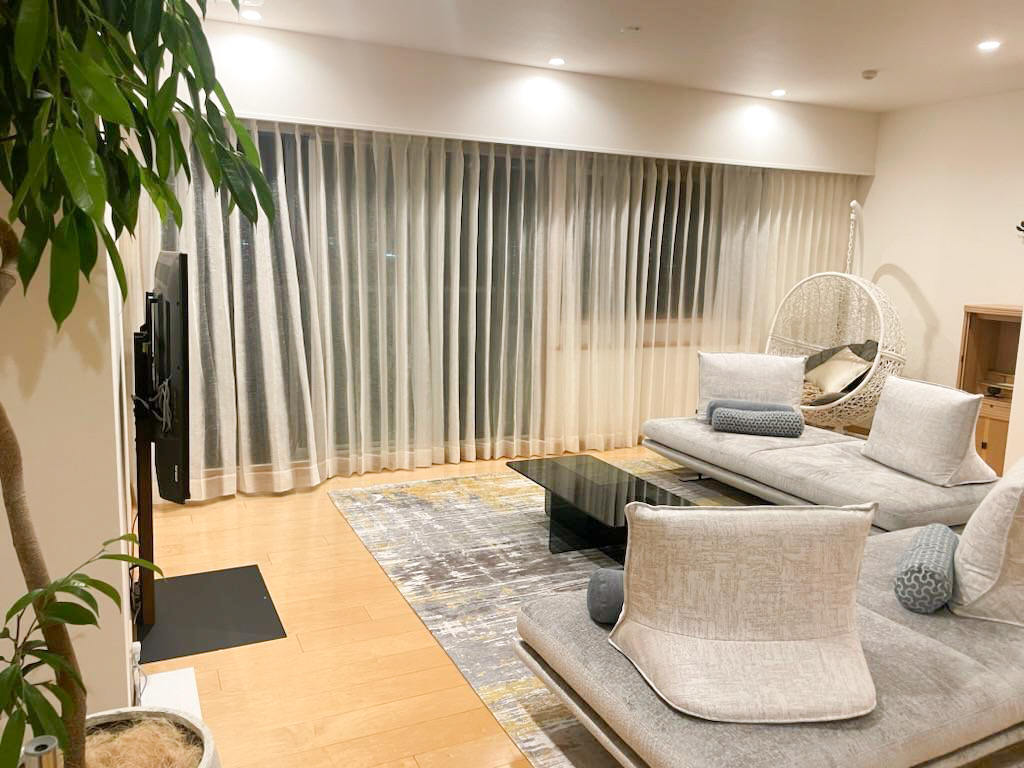 風でカーテンが揺れているのも幻想的でお部屋をワンランク上の上質な空間にしています。
