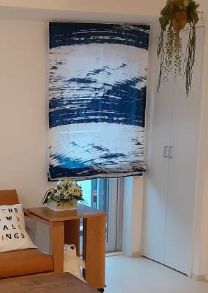 フジエテキスタイルさんの「シブキ」をアクセントでシェードにお仕立てしました!
