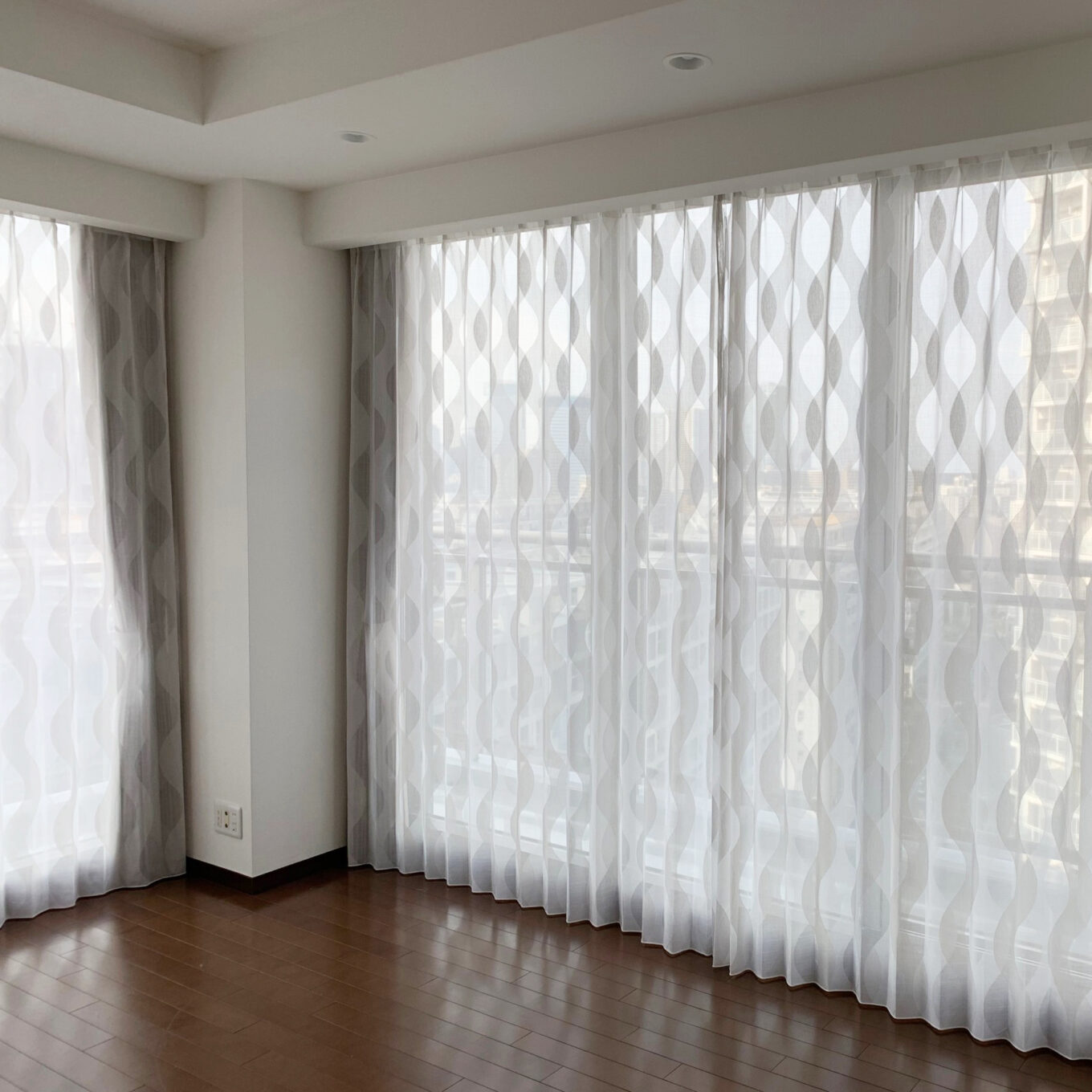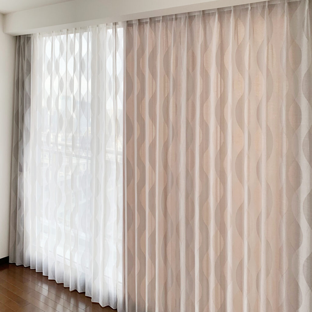 流れるウェーブが素敵な生地で奥行を感じる窓辺に
