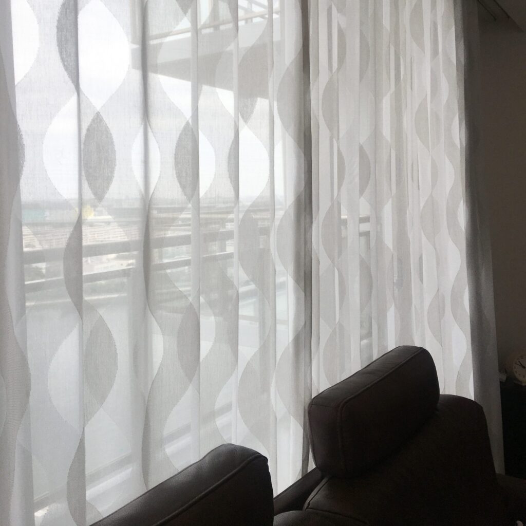 3m幅のレース生地ですので、レースカーテンに繋ぎ目なく納められました。