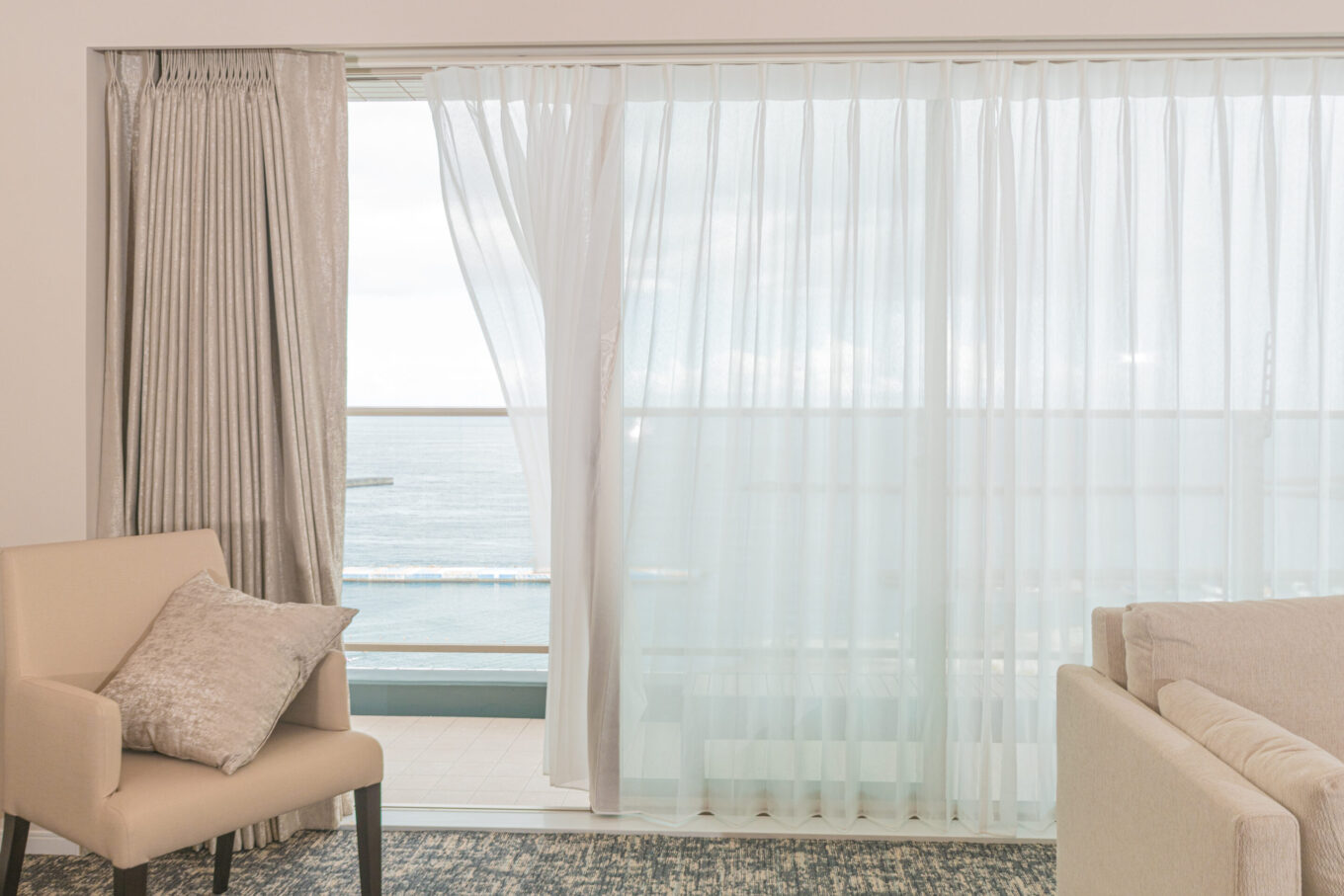海辺を一望できるホテルのような上質な空間を、カーテンで。