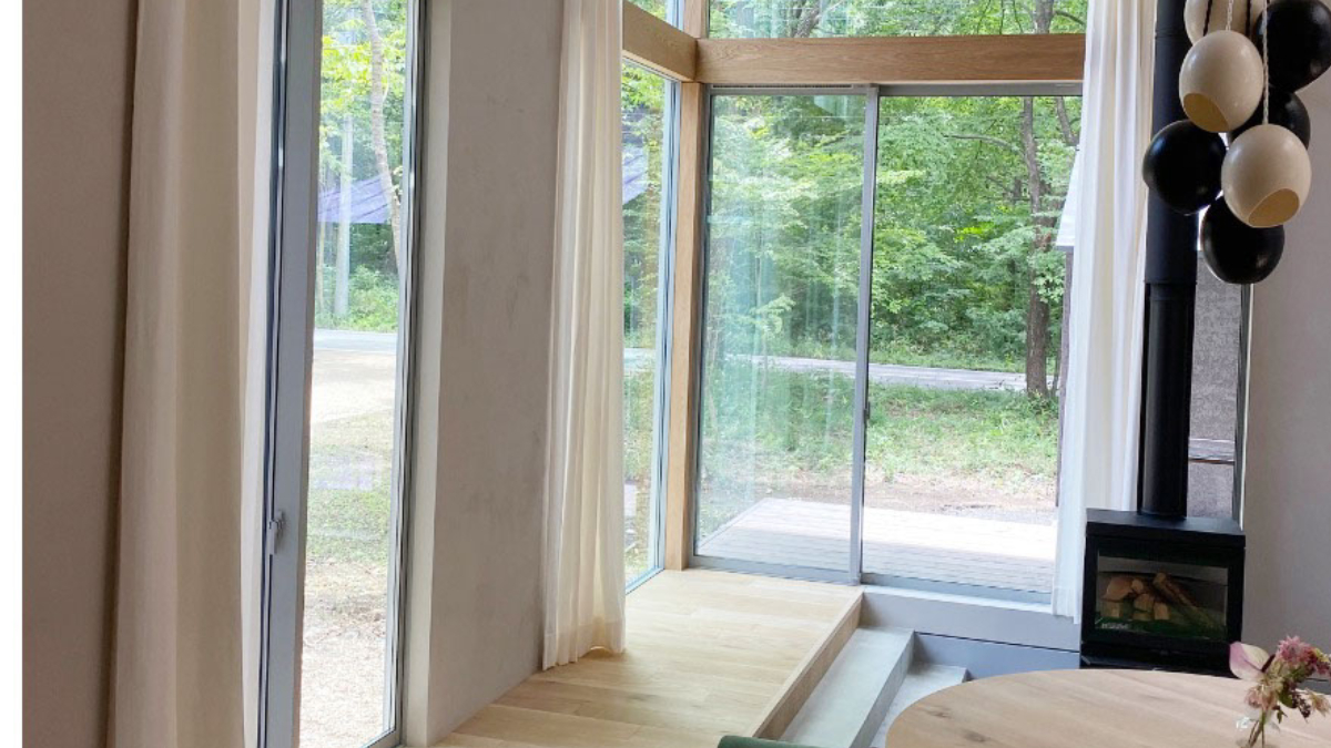 美味しい景色と自然素材いっぱいのリビングルーム