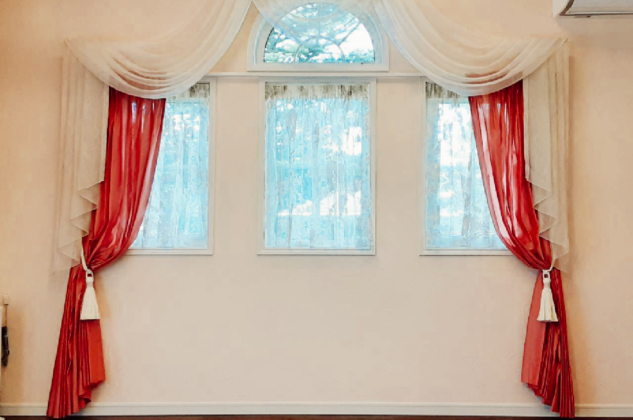 オーガンジーの透け感を活かしたスワッグバランス