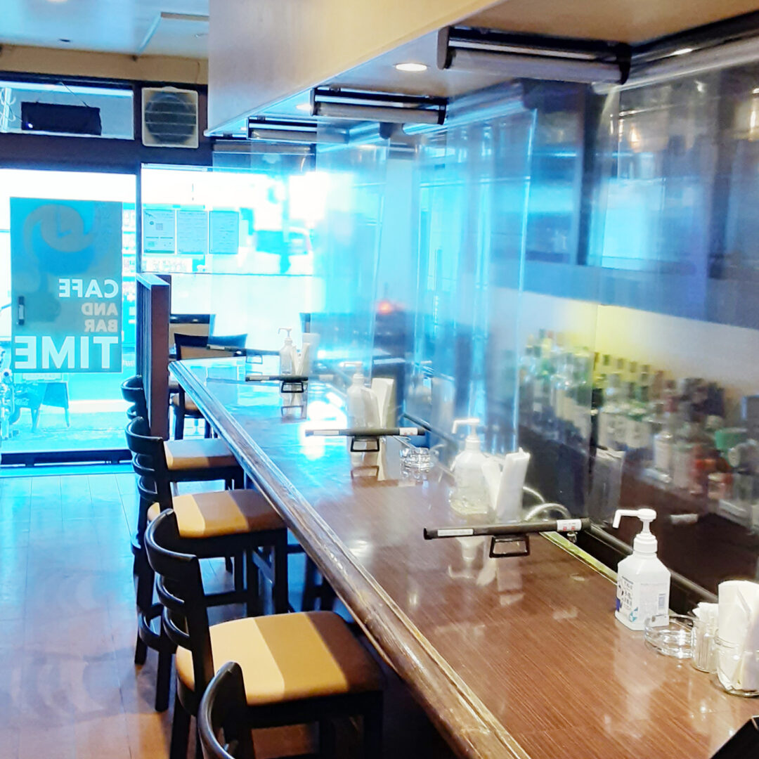 CafeTIME様に飛散防止の透明ロールスクリーンを納めさせて頂きました!