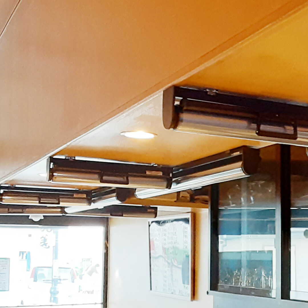 タチカワブラインドの透明ロールは防炎マーク付で商業施設でもお使い頂けます。