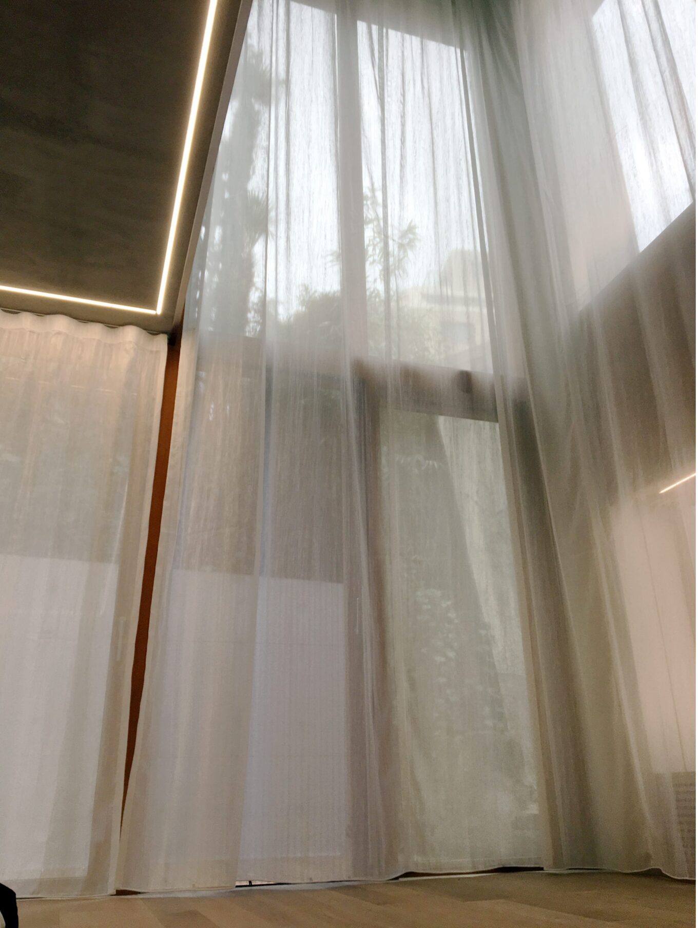 今回は特注で5.2m程の高窓からフラット仕様で制作しました。 滝が流れている様なテクスチャーが、とても美しい仕上がりです!