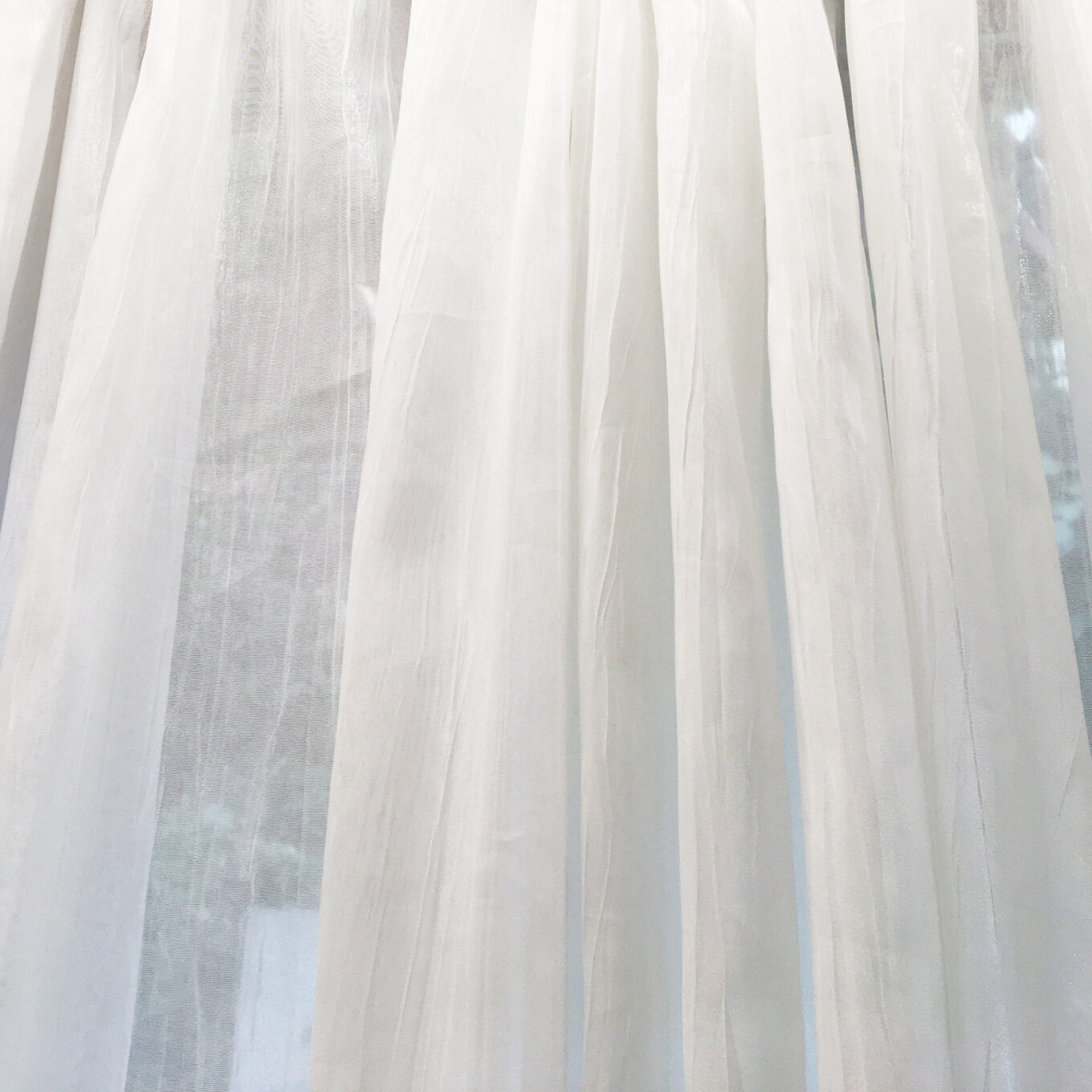 光でキラキラ輝く、シワ加工のレースカーテンです。