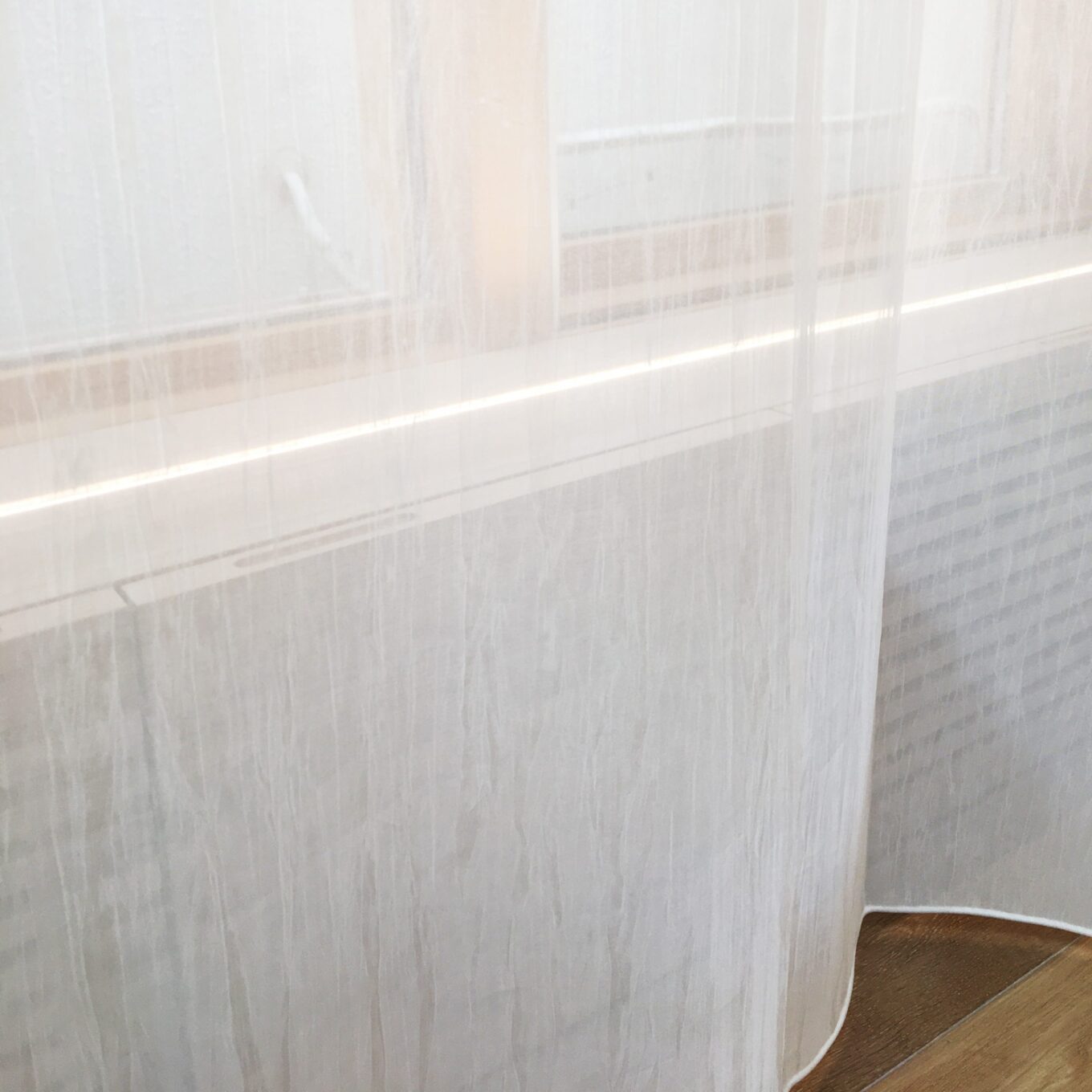 高窓から滝が流れるようなフラット仕様のレースカーテン