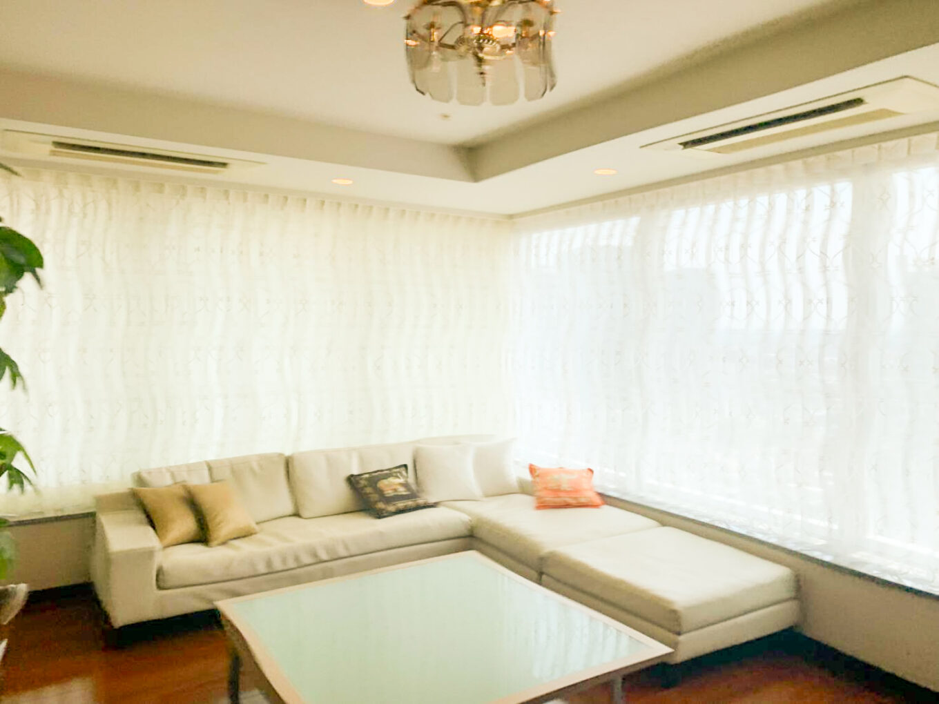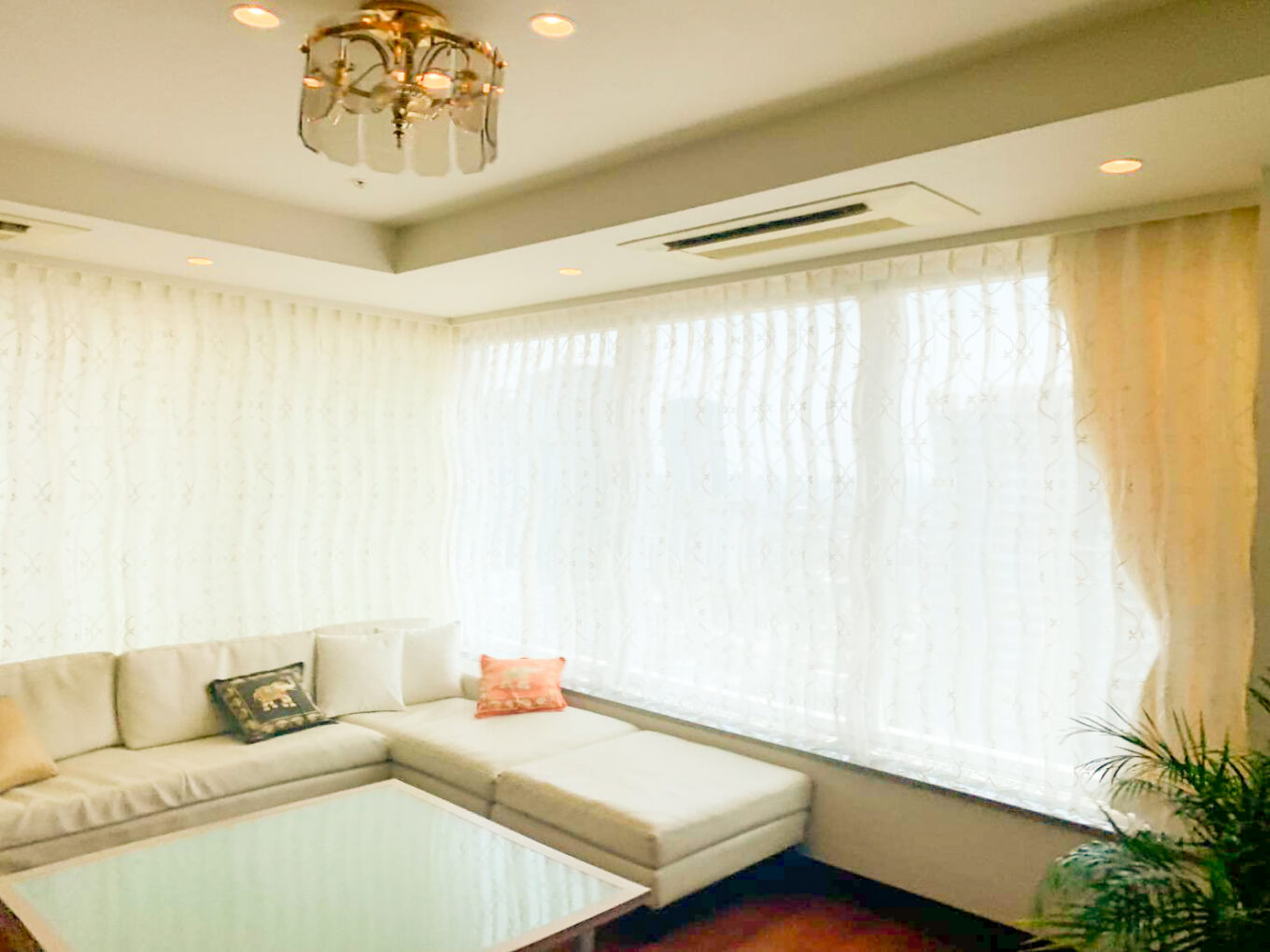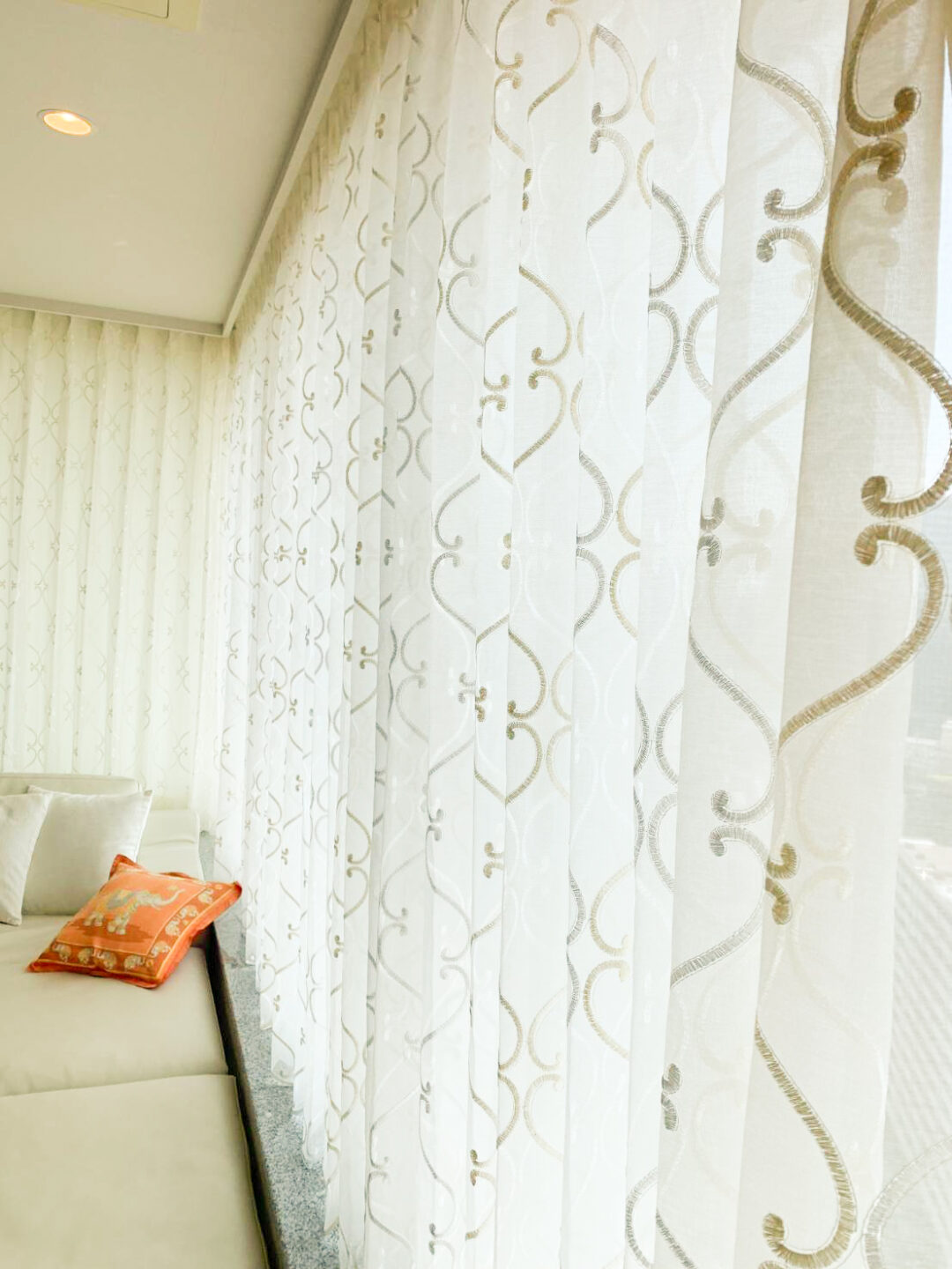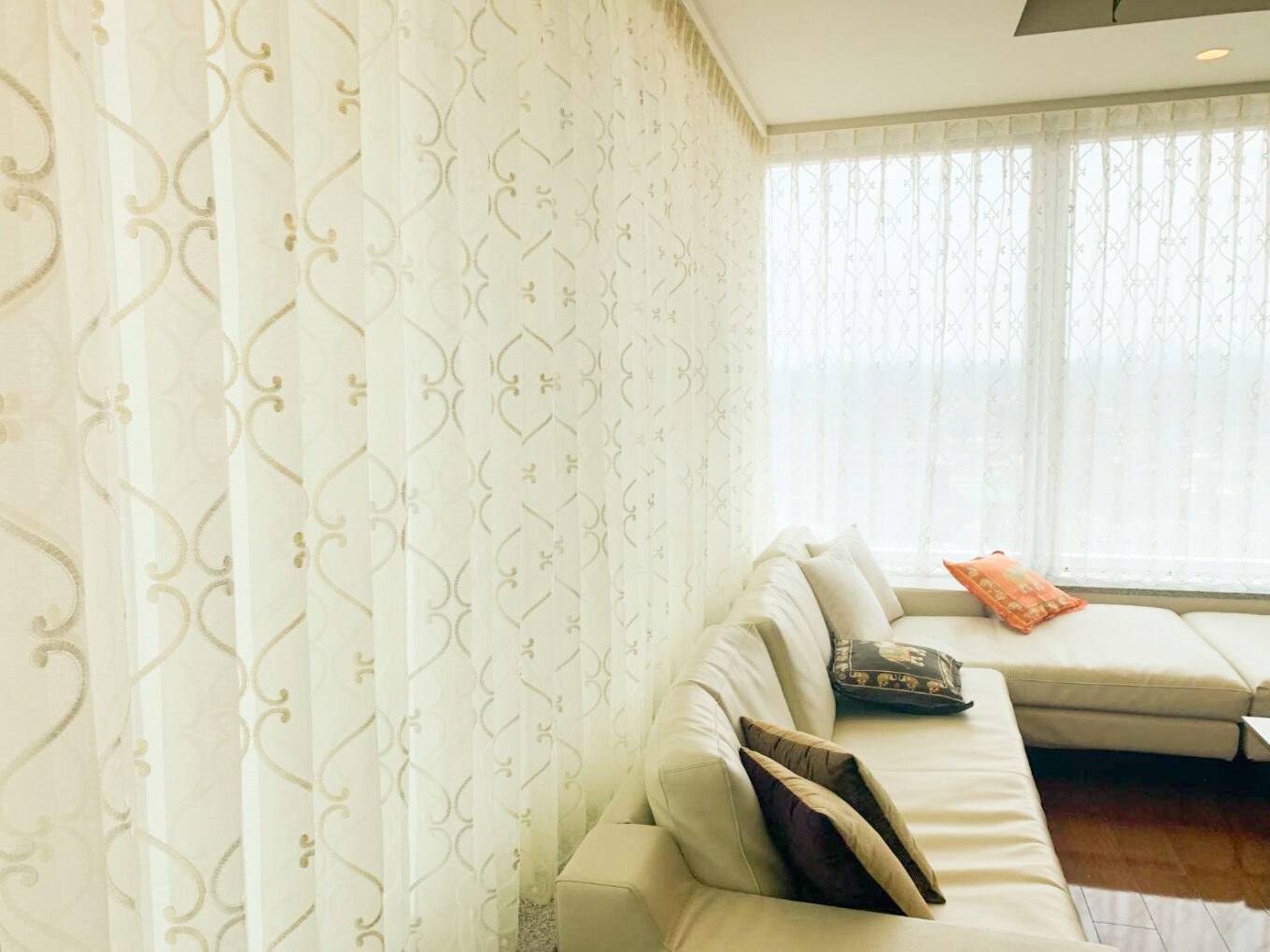 タワーマンションのL字型窓にオーダーカーテンをお仕立てしました。