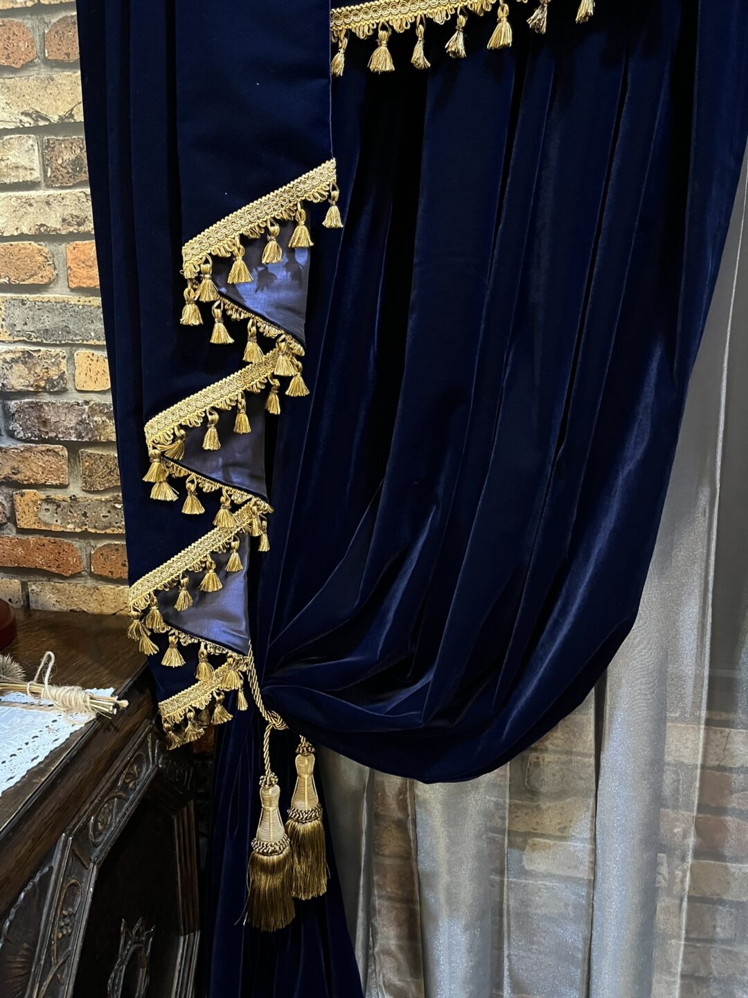 生地:ベルベット濃紺+シャンタン無地+ゴールドトリム&タッセル